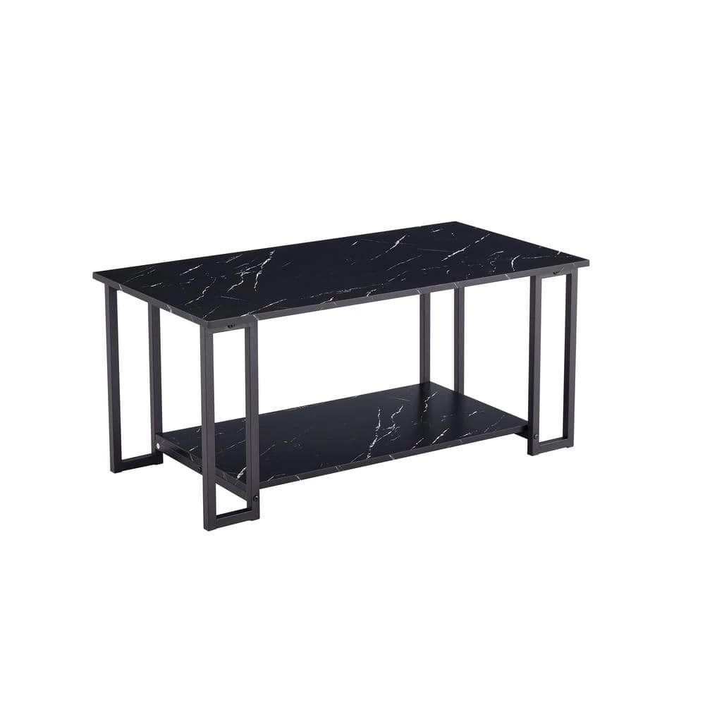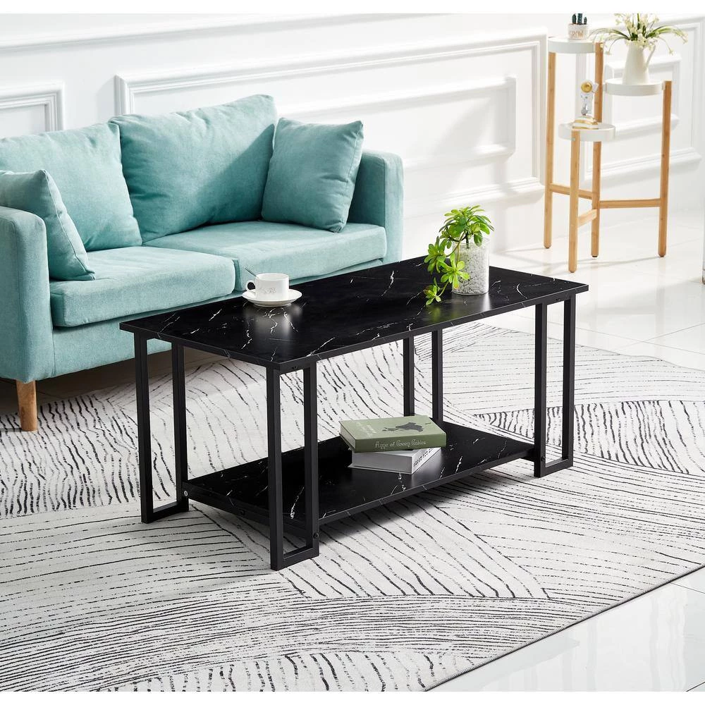 - 【Minimal Modern Style】The two-layer imitation marble table top coffee table with the high-grade design sense of metal bracket legs, simple and fashionable, suitable for any style of interior decoration, don’t worry about whether the coffee table matches your home.