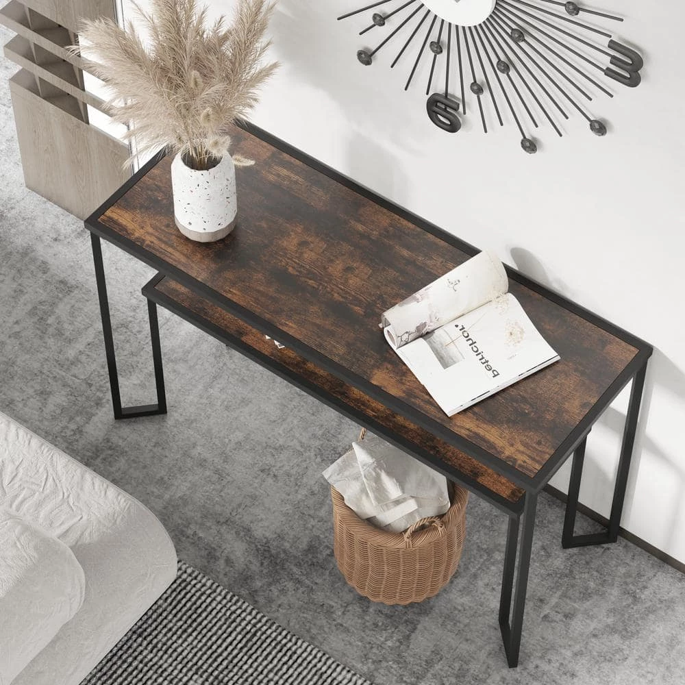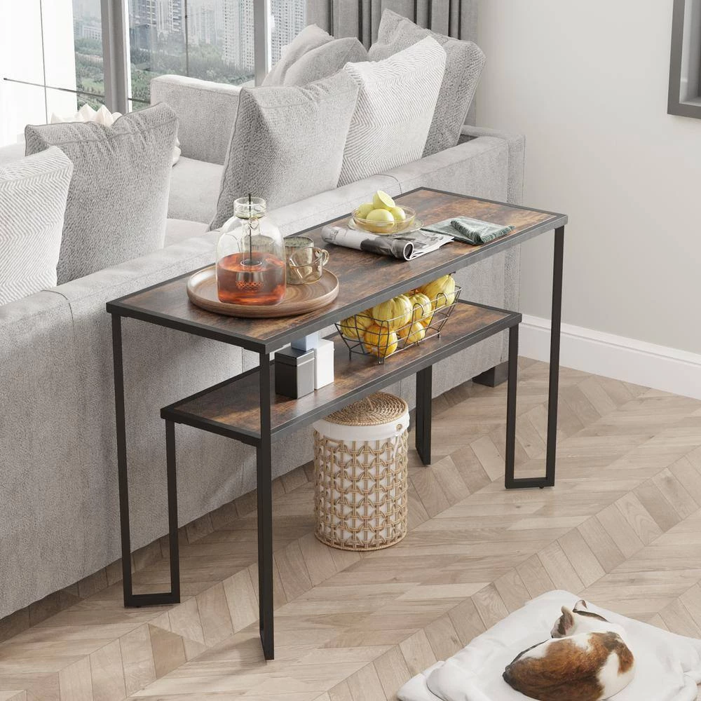 Maximize your space with this 2-tier sofa table with storage shelves. The classic color and style, along with the sleek table top, make it perfect for matching any scheme or tonal style to upgrade your home a notch! It is non-slip and scratch resistant, making it easy to move and clean.