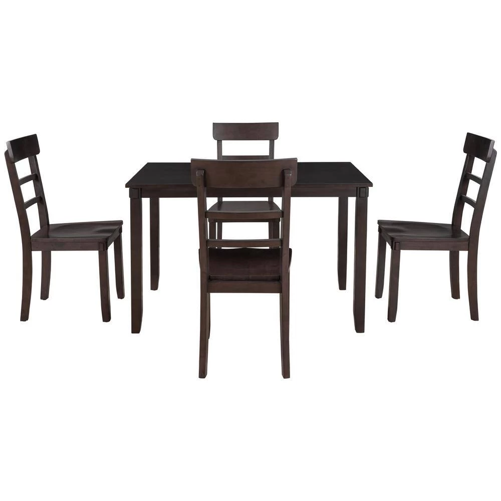 - 【High Quality】This 5-piece dining table set is sturdy and very stable. The table is made of super durable and non-distorting high quality engineered board and veneer. The table and chair legs are made of solid rubber wood for added stability and durability. Decorative wood strips along the edges of the tabletop help enhance the sturdy, traditional feel. Weight Capacity: 288 lbs for table, 222 lbs for chair.