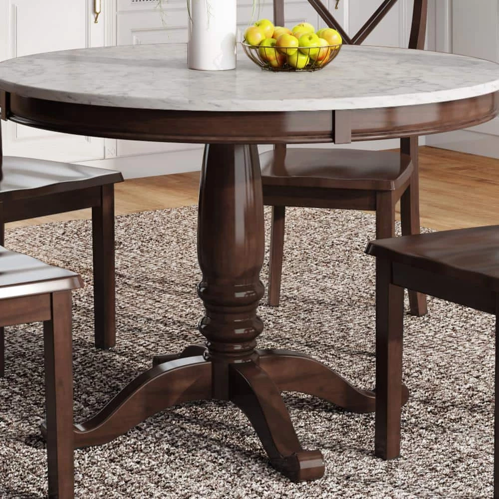 - √Classic Style: Adds a stylish feel to your space, the table with marble table makes this kitchen table set more elegant and easier to clean the table top. The table top is a circle with a diameter of 41.7 inches, table height of 29.9 inches.