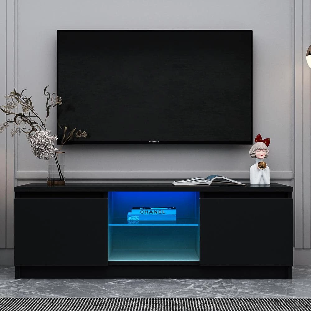 - 【PERFECT Dimensions】the overall dimensions are (47.24 x 15.75 x 15.75)” / (120 x 40 x 40)cm (L x W x H). Modern Central entertainment features LED lights system for up to 55-inch TV Screens, Spacious tabletop along with two doors and two open cabinets satisfies all your display and storage needs in the bedroom or living room,Elegant enough for adding special charm to your house.