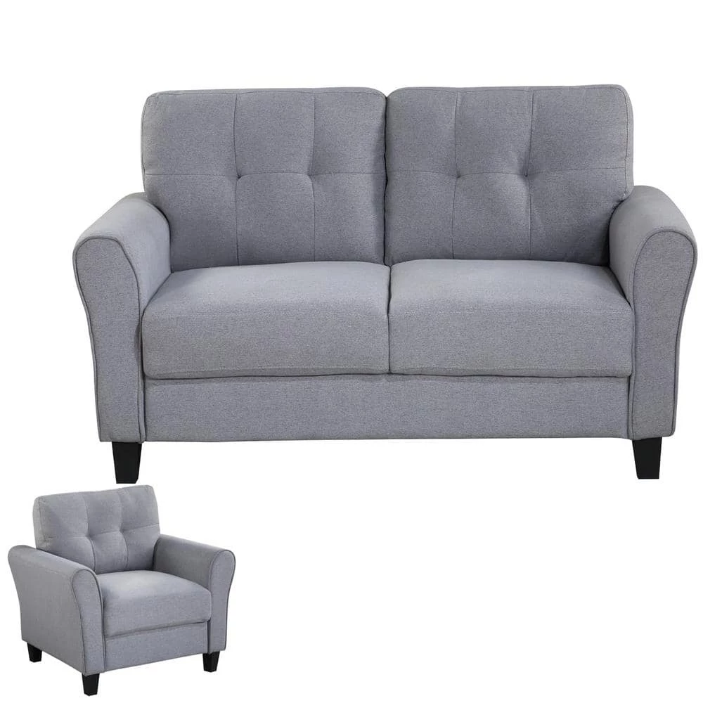 This modern-styled sofa set features tufted back cushions which provide a more comfortable place to seat.Featuring a soft fabric and an extra button tufted linen back seat cushion.A clean and simple silhouette in a durable performance fabric, it’s the perfect addition to your living room.