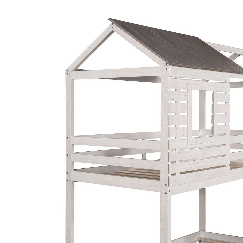 - Solid Construction Kids House Bed: the twin house bunk bed Crafted from high-quality solid pine wood can last for long time use. The upper bed and lower bed are both supported by 10 plywood slats, no box spring box is needed. The roof, drawers and slide are made from MDF boards, ensuring strong stability and durability.