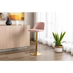 32 in. Velvet Counter Height Adjustable Bar Stools, Swivel Dining Chairs with backrest and footrest(Set of 1), Pink by ANBAZAR