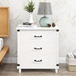 Vintage Aesthetic Solid Pine Wood One-Drawer Brown Nightstand 25″H x 17″W x 22″L by ANBAZAR