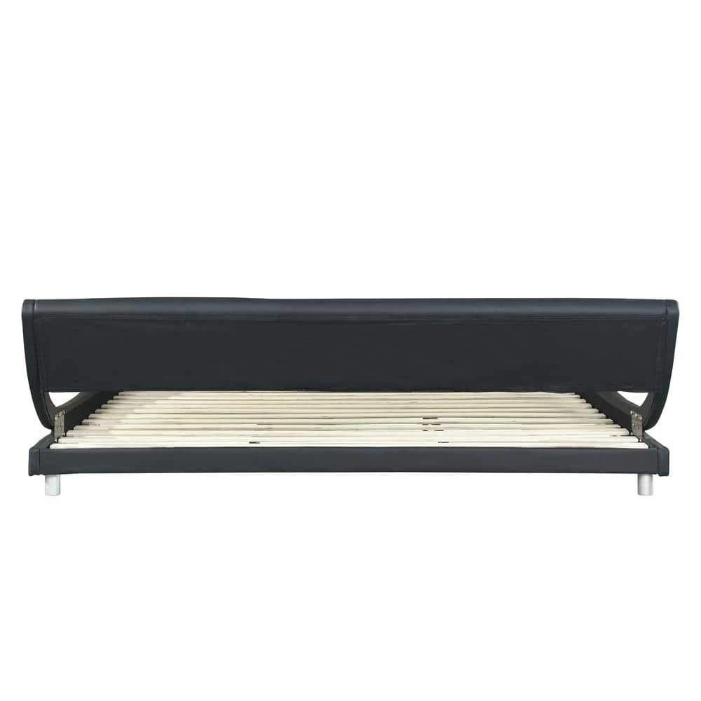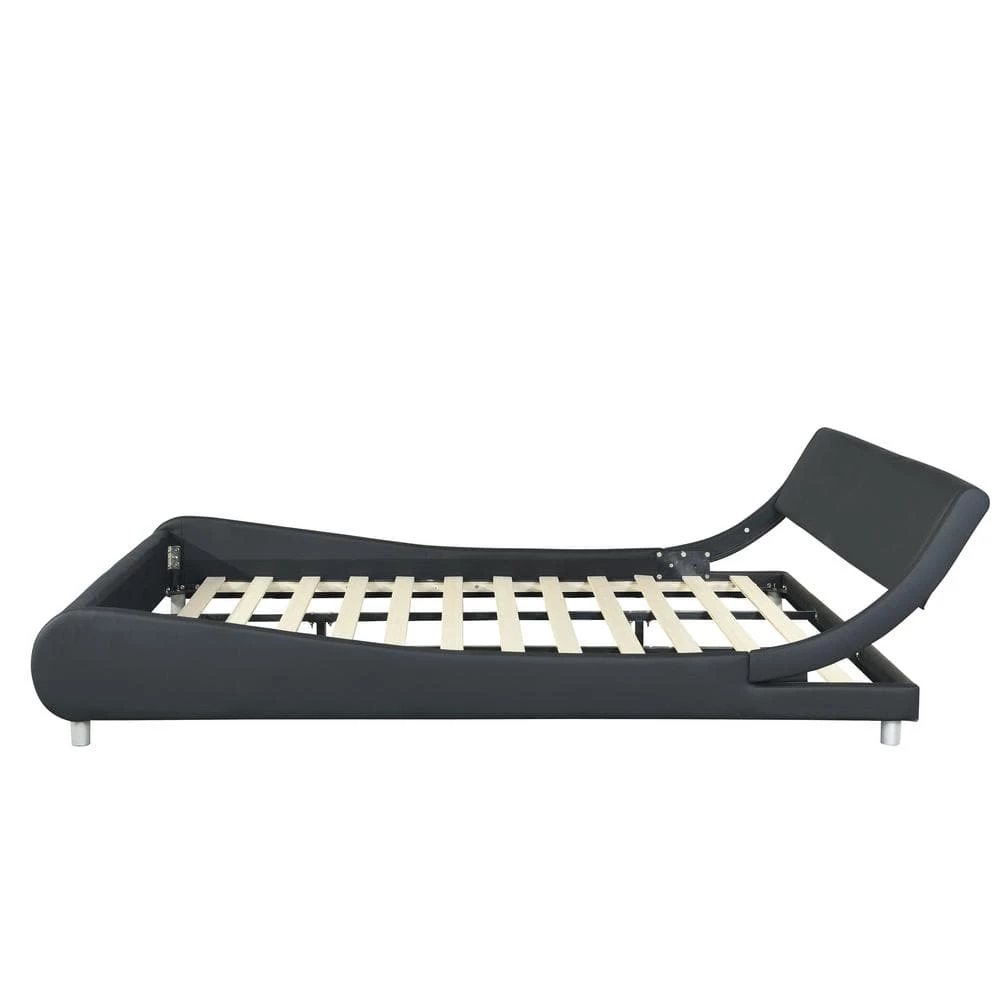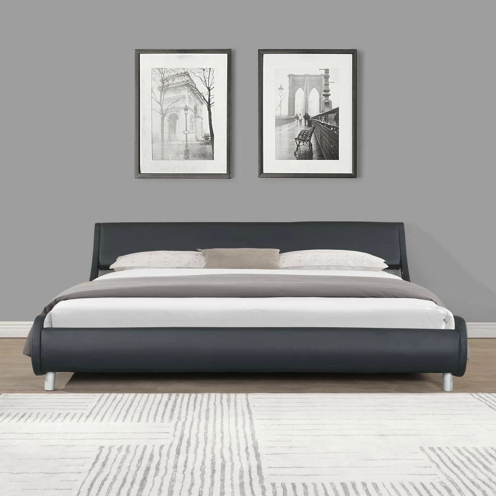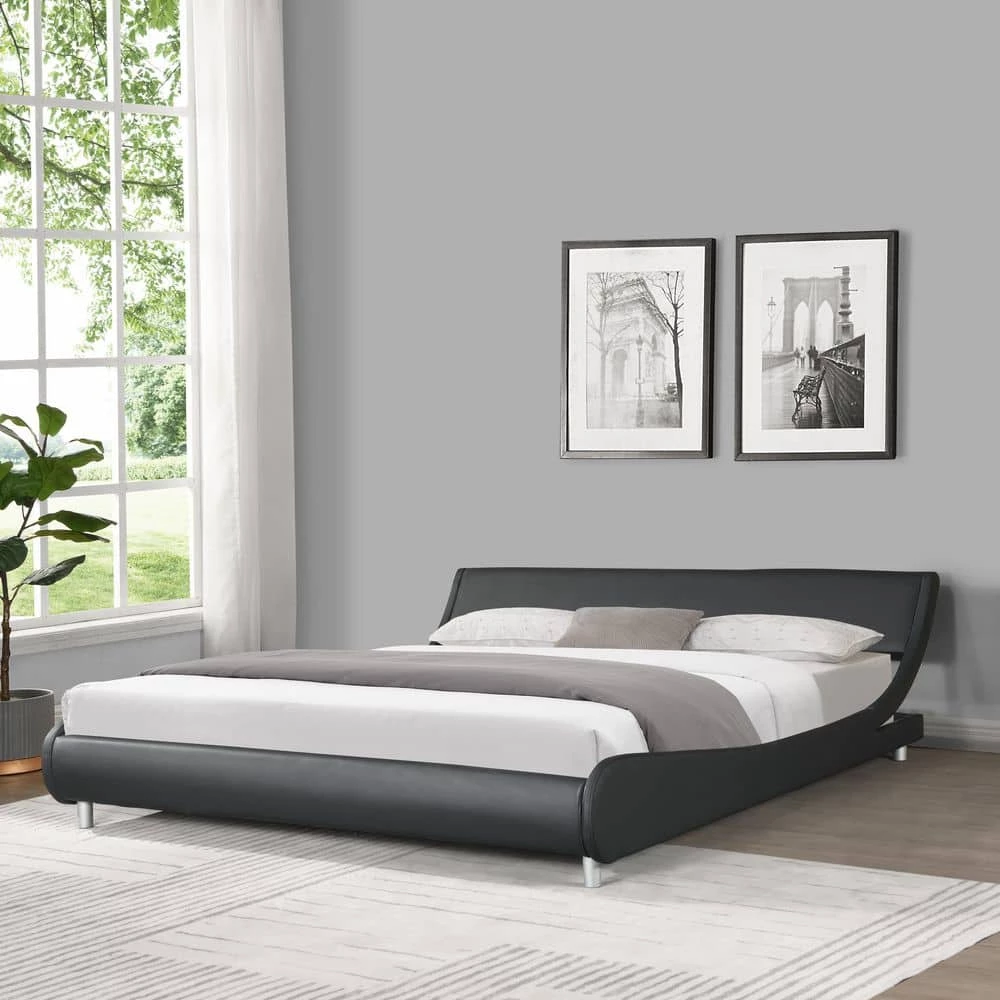 The leather platform bed is beautifully covered and has a sleek curve design which is very eye-catching. The Bed frame came with heavy metal brackets and bolts for a very sturdy construction. Reinforced wood slats support the mattress (not included) well. The strength and toughness of the reinforced slats are high. When you lie down, your weight can be evenly distributed without making a sound. It has bowed bottom ends that relieve the need for a box spring. The bed features a very low frame but that is what you want if you like it. This bed frame can be used with all types of mattresses including memory foam mattresses. Easy to maintain with a faux leather cover and simply clean with a damp cloth.