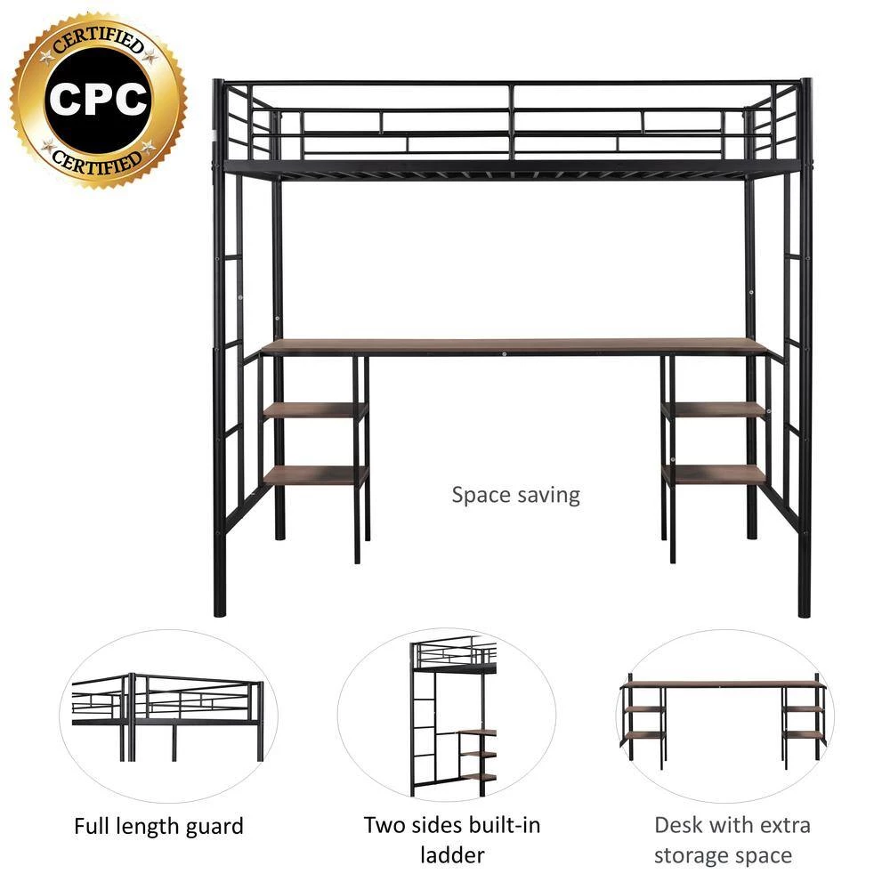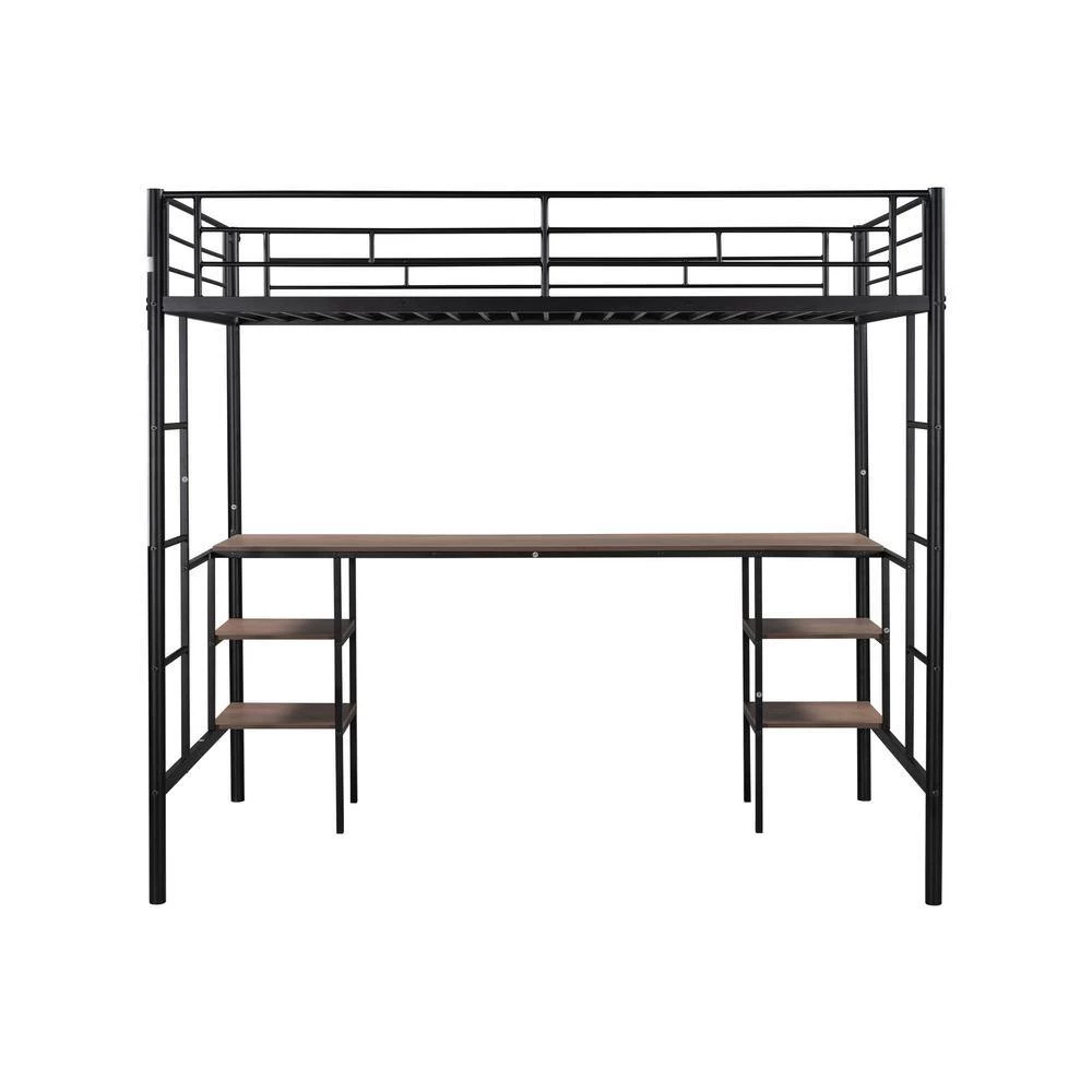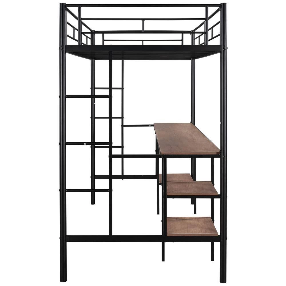 - 【Multi-functional Twin Loft Bed】Loft bed has desk and storage shelves. Featuring an integrated desk and sturdy shelves, this metal loft bed with desk is built with a comfortable sleeping space and a spacious and useful workstation underneath.