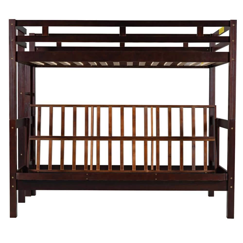 - 【Twin over Full Bunk Bed】 Standard twin over full bunk bed frame, this wooden bunks can easily be convertible into 2 Separated Beds ( One twin size upper bed and One full size bottom bed). Top Bunk Weight Capacity: 200 lbs, Bottom Bunk Weight Capacity: 400 lbs.
