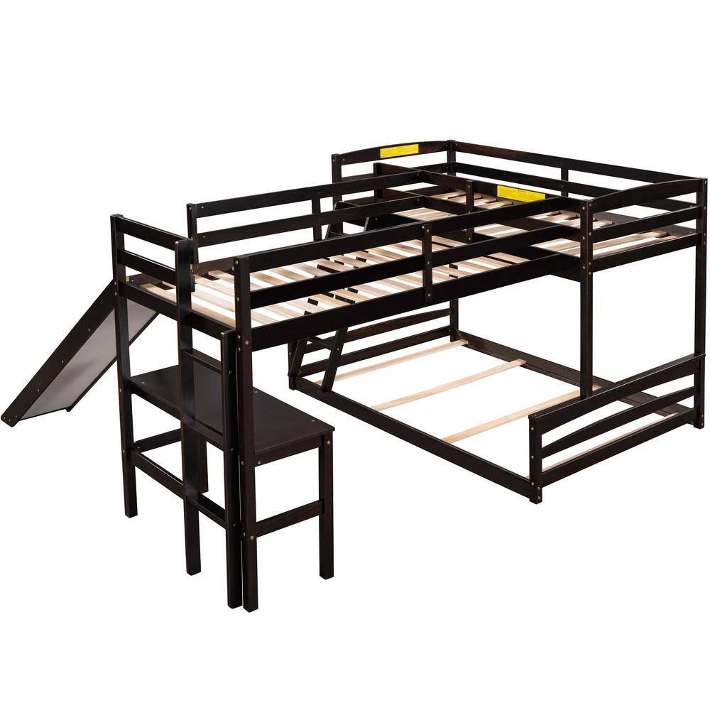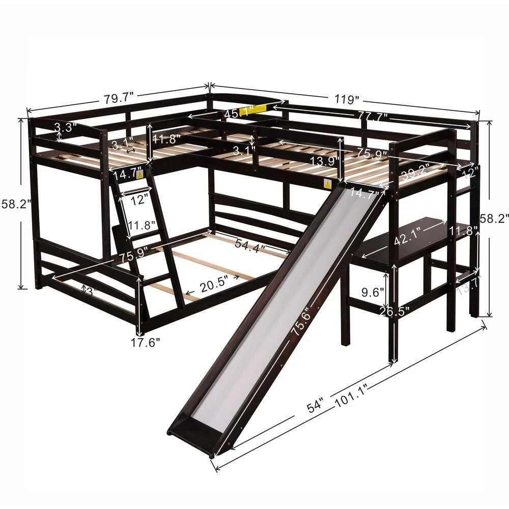 - 【3 in 1 L Shape Triple Bunk Bed】This L shaped triple bunk bed features twin over twin bunk beds on upper and full floor bed with desk. It is perfect for multi-child family, out-of-town guests or hosting your kids’ friends for a sleepover. It can fit in the corner of the room, perfect for limited space.