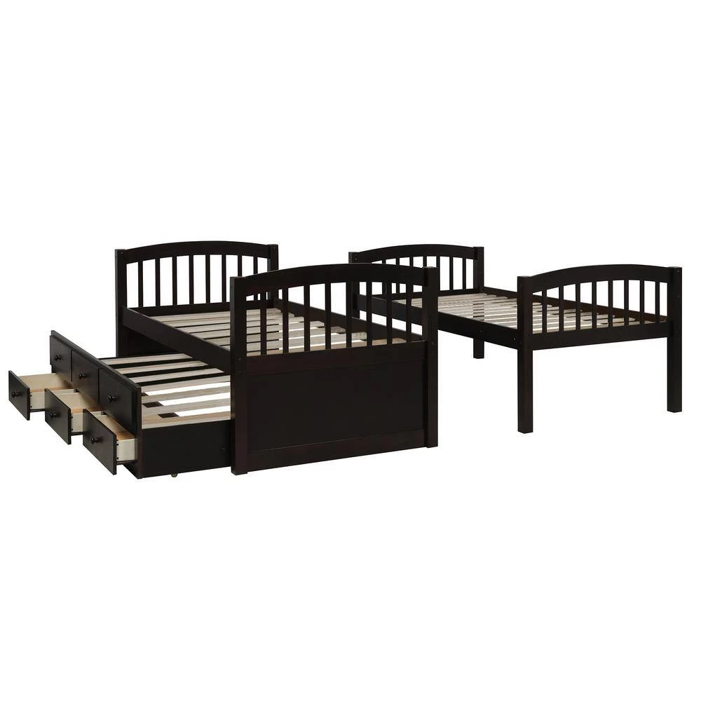 - 3 in 1 Trundle Bunk Bed: the trundle under the bottom bed makes this piece a great option for sleepovers. Twin over twin bunk bed can be separated into 2 twin-size bed and one twin-size trundle. It can help you accommodate friends or your family member.