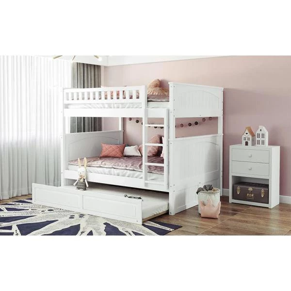 - 【Classic design】This wood bunk bed features two full size beds and a twin size trundle bed for accommodating your kids or any overnight sleepers. It can also be divided into two separate full beds and one twin trundle bed on your different needs