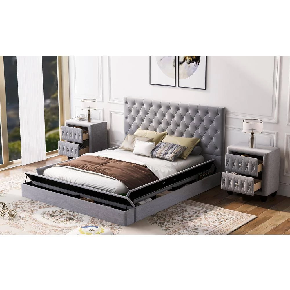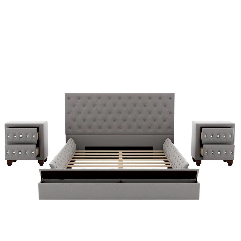 - 🏡【Gorgeous Upholstered Bed】This upholstered platform bed features double nailhead on each side of wingback and beautifully upholstered with tufted button accents on headboard. It can well match with any home decoration.
