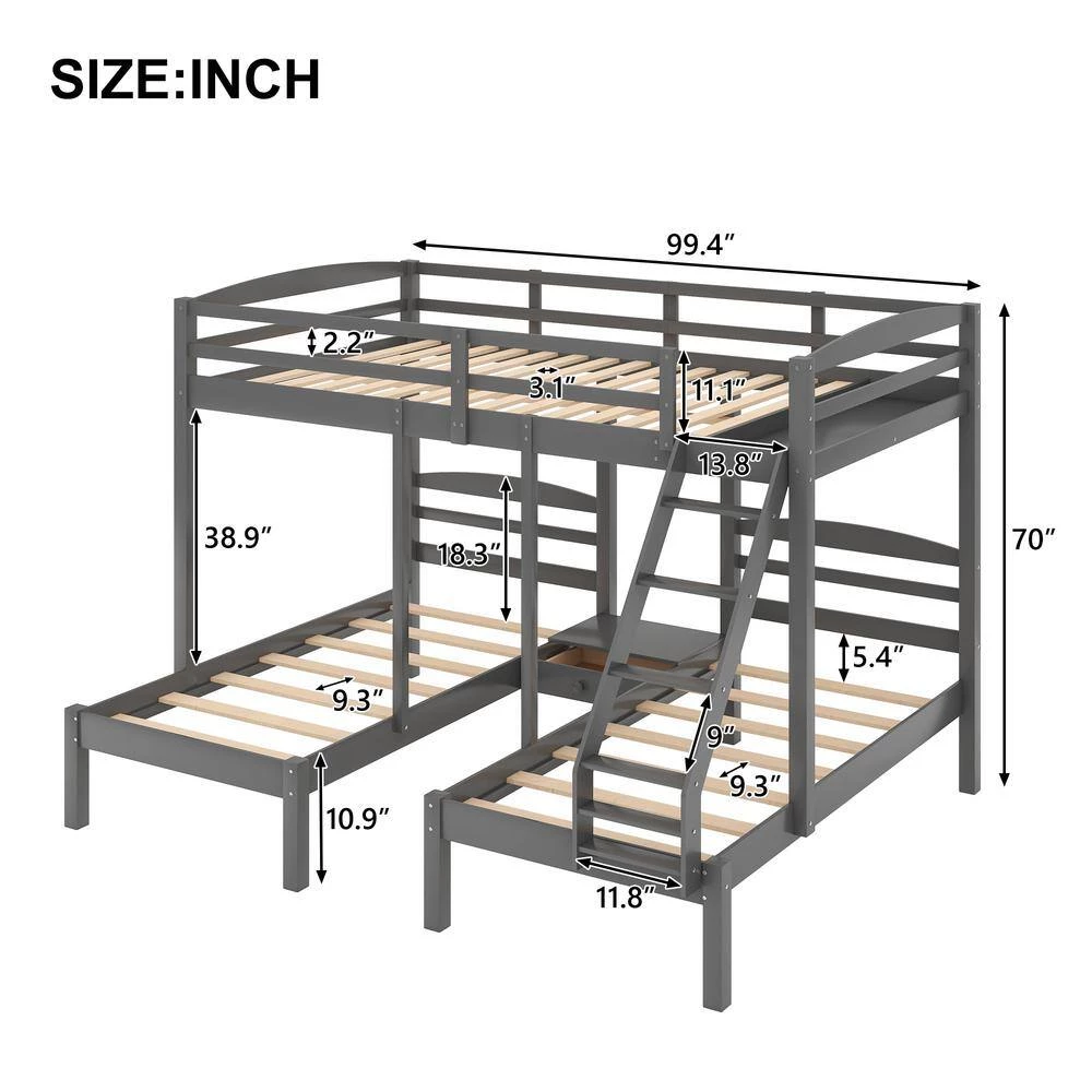 - 【Convenient and Safe Ladder】With the incliined built-in ladders, it is easy for children to climb up and down from the top bed. This triple bunk bed can add fun to children and develop their sense of balance and coordination.