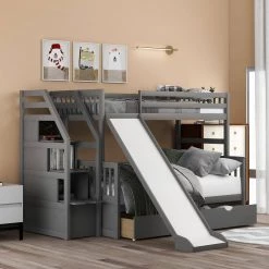 - 【Twin Loft Bed with Slides】The design of the slide on this twin loft bed adds the fun to the child that creates a sleeping and playing environment, they will prefer this little space that belongs to them.