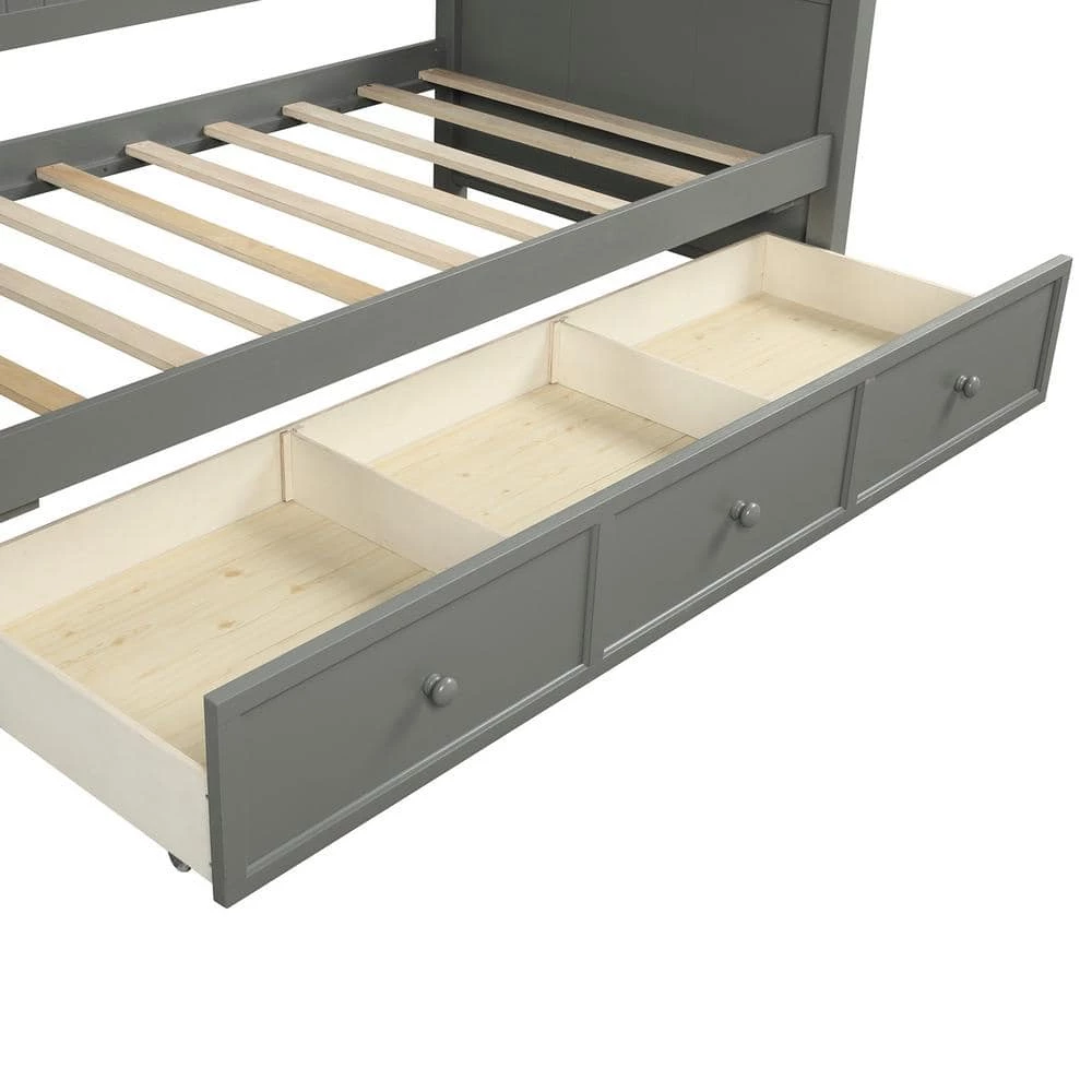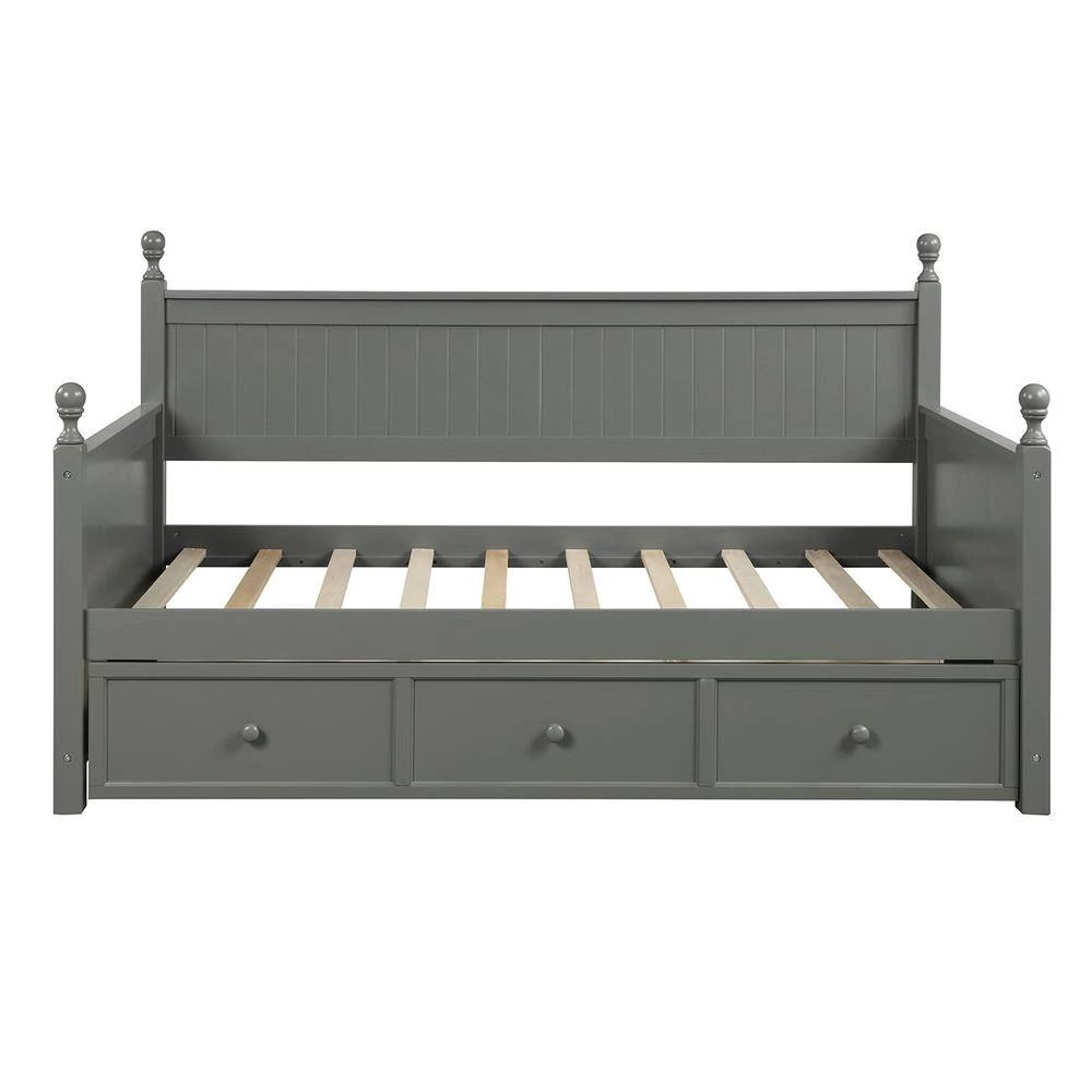 This wood daybed frame is designed with simple and clean appearance which is suitable for a variety of decoration styles. This daybed features 3 pull-out drawers under the daybed which provide spacious storage place to organization your necessaries, making your living room organized. The drawers have 4 running wheels, which are sturdier and easier to move back and forth.