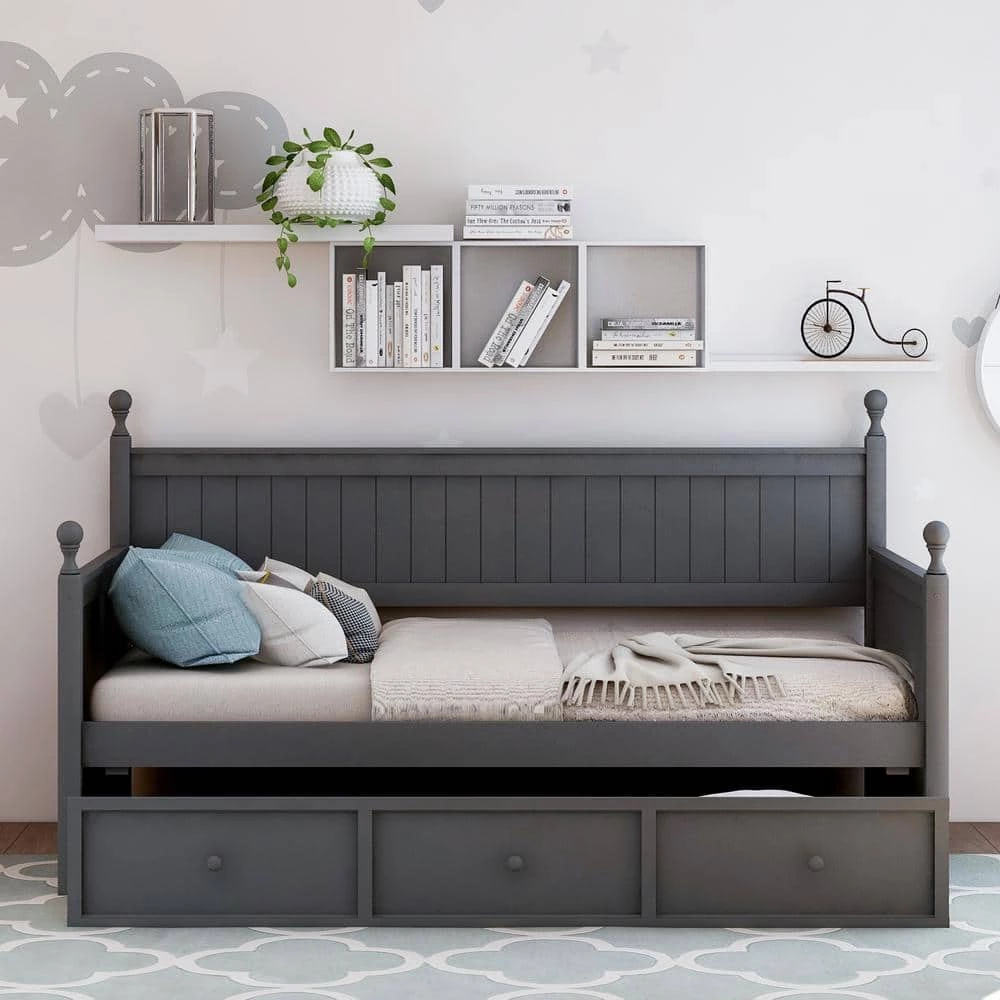 - Storage under the bed: the daybed features three storage drawers hidden underneath. You can use it for clothes, games, or sheets. The drawers have four running wheels, which are sturdier and easier to move back and forth.