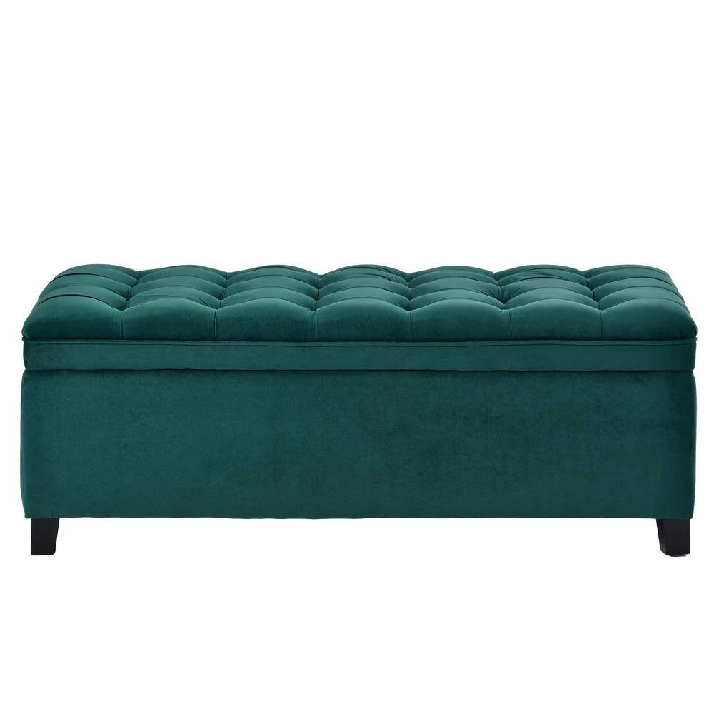 The toy chest is covered with 100% Polyester. Highly resilient foam padding brings a great seating experience. Extra large-volume ottoman is sufficient to meet various needs. With its hinged top, the bench can be lifted to reveal a roomy interior storage compartment. Multi-purpose ottoman works great as shoe bench, window bench, footstool, bed stool, toy chest, puppy step, coffee table, etc.
