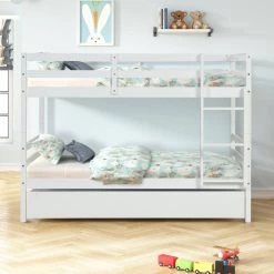 Wood Bunk Bed, Full Over Full Bunk Bed Frame with Ladder, No Box Spring Needed Espresso by ANBAZAR