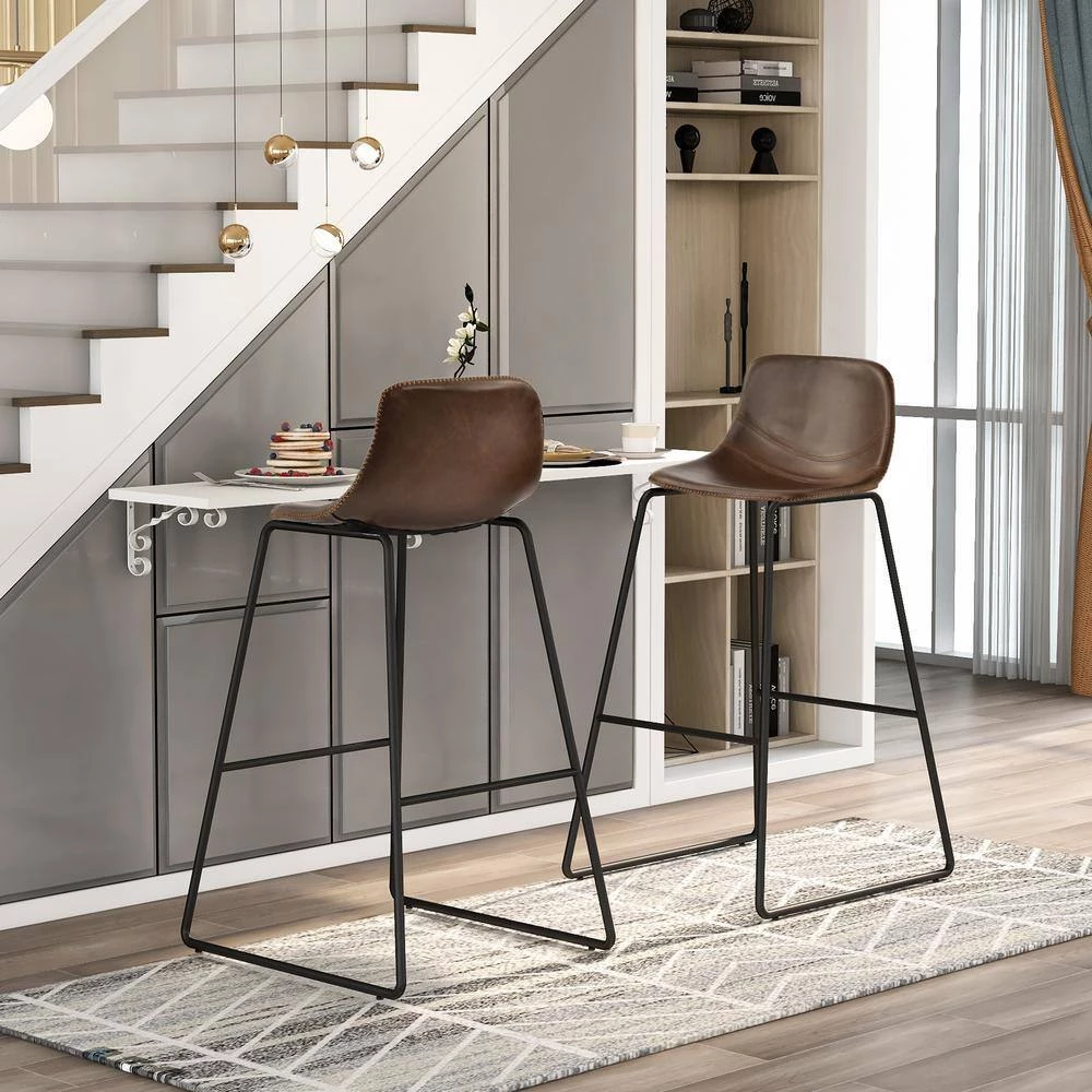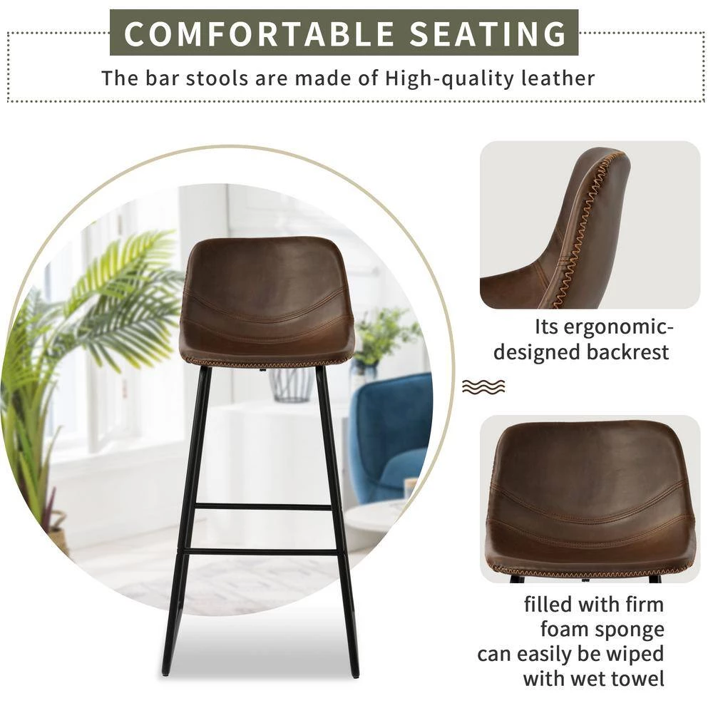- 【Retro Style Chairs】This vintage leather bar stools are combined of antique color and modern design can match any decoration or style. They are great for dining room, kitchen, living room, entertainment area, rest area, restaurant, office, exhibition, coffee house and so on.