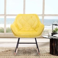 Yellow Velvet Upholstered Rocking Accent Arm Chair (Set of 1), Wood Frame Upholstered Arm Chair with Rocking Legs by ANBAZAR