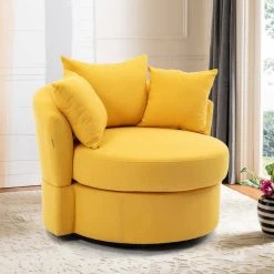 Yellow Linen Fabric Upholstery Barrel Arm Chair (Set of 1), Accent Upholstered Leisure Barrel Chair by ANBAZAR