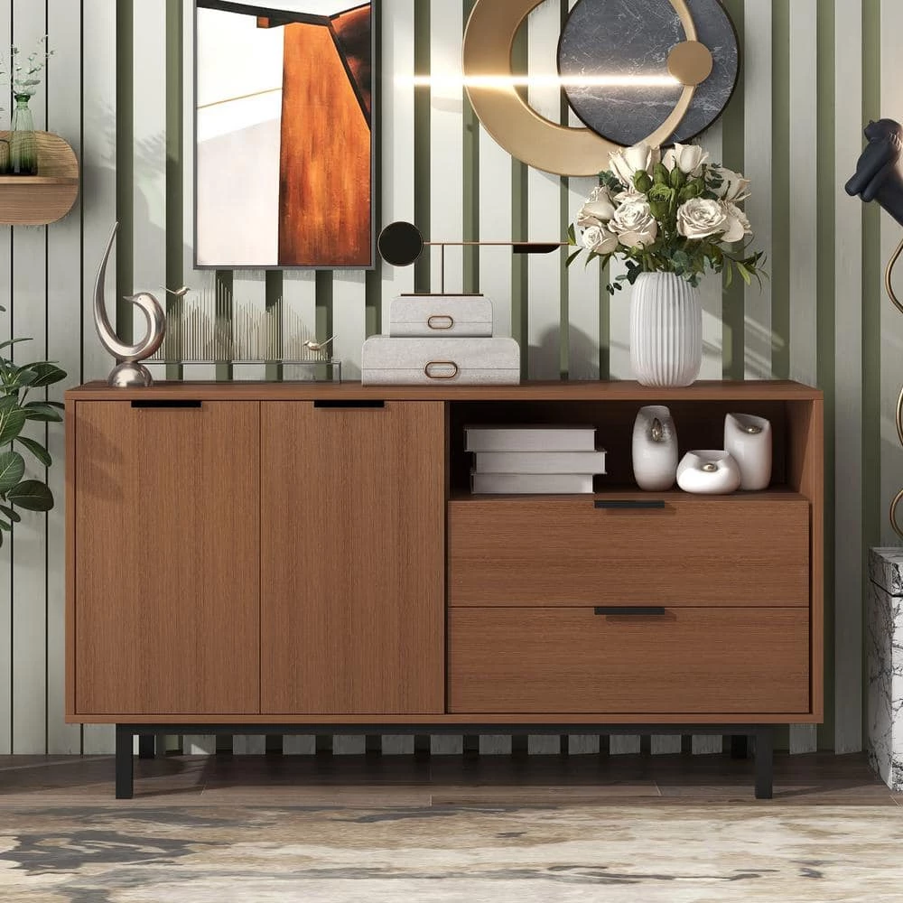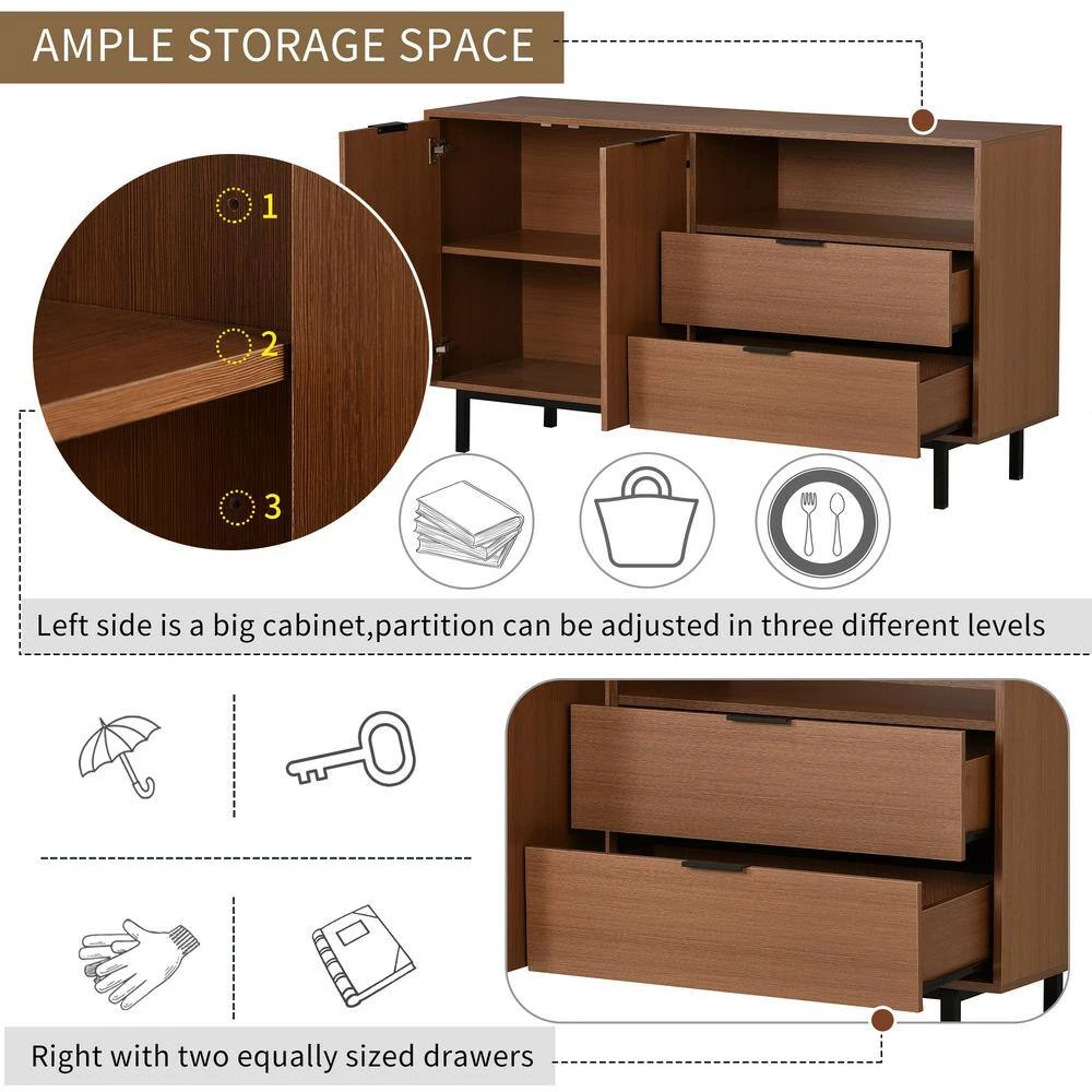 - 【Ample Storage Space】This buffet is ideal for you to store your supplies. Featuring 1 adjustable shelves and two big drawers, it is convenient for you to store cutlery, gadgetry and more. If you need more storage space, this storage cabinet buffet is your ideal choice, this buffet can meet your different needs.