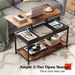 Lift Top Coffee Table with Storage Shelf and 2 Hidden Drawer Compartment for Living Room by ANBAZAR