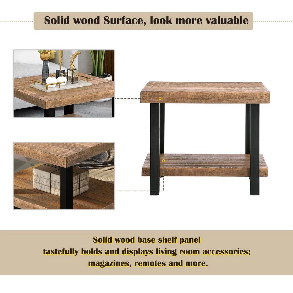 Distressed, solid wood planked top and open shelf provides a warm, yet elegant home feeling.Knots, cracks and variations in the wood are all a part of the history of this wood furniture. The 2-tier open rustic coffee table is Ideal for placing lamp, books, magazines, baskets and other household items. The table board base.is made of MDF board, it has a good stability and is not easy to deform.Table legs are made of the powder coated iron pipe, they are very stable, rust-proof.