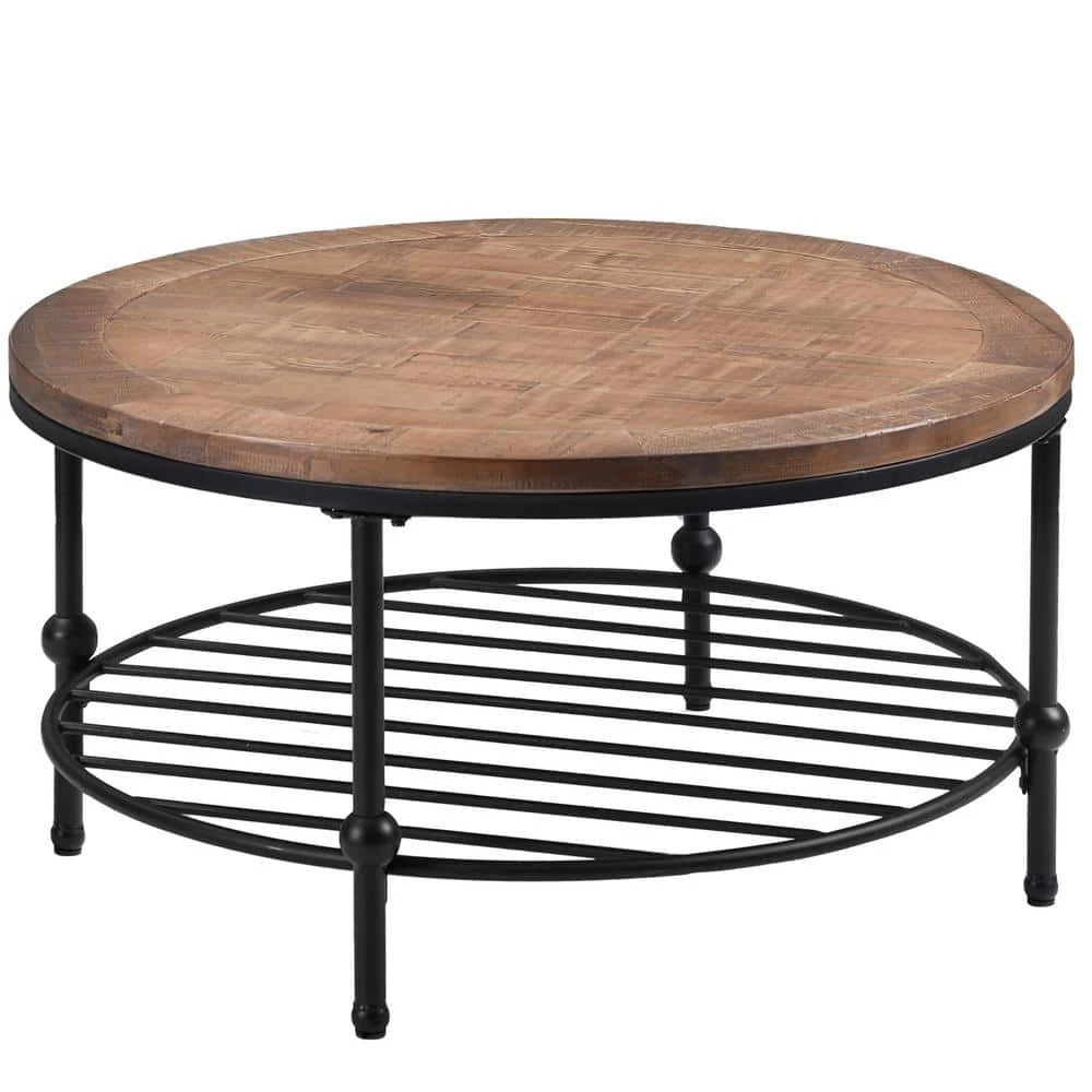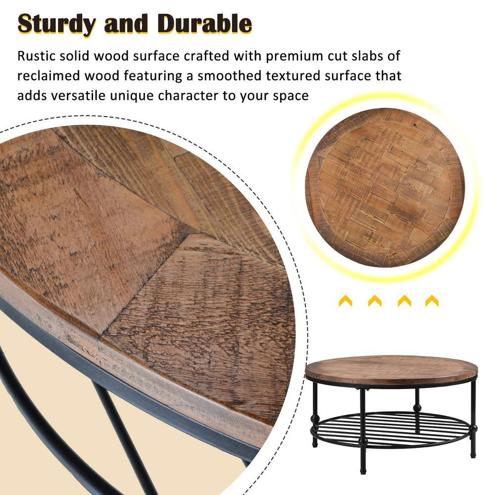 - Simple yet Rustic Coffee Table: Rustic round coffee table for its simple yet elegant design,with a simplistic wood grain veneer and metal shelf supported by a metal frame.
