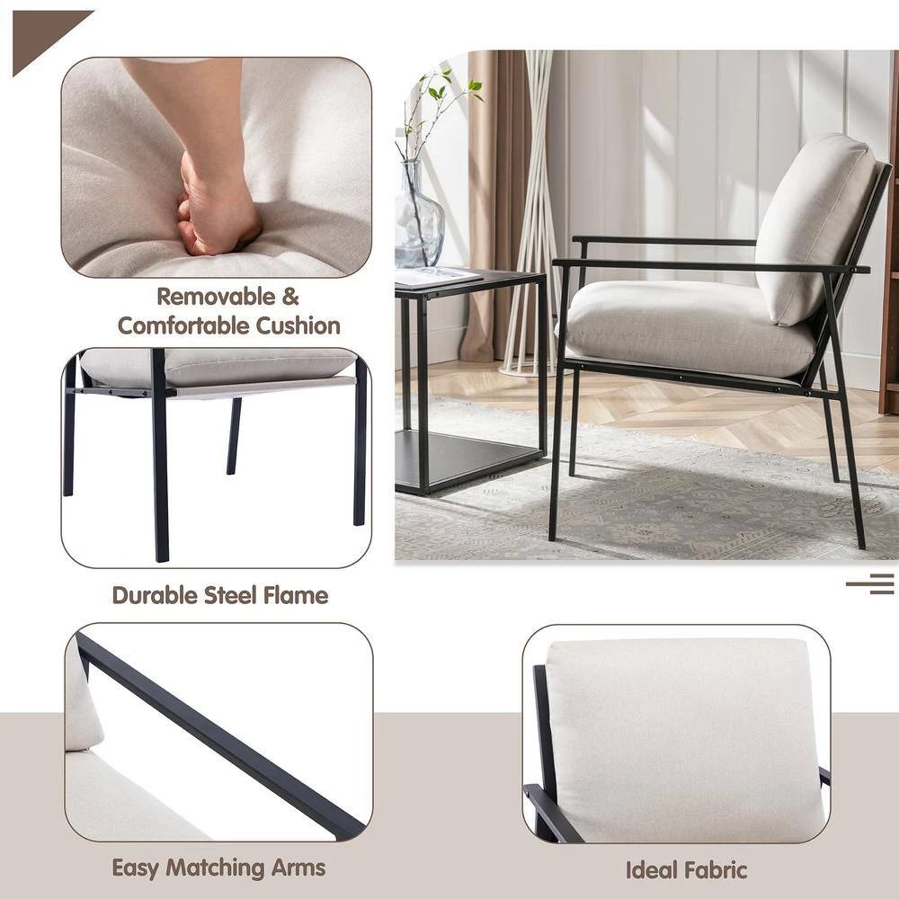 - 【Sturdy and Durable】This living room chair is made of solid metal frame as a whole with a strong and durable structure, Solid legs, high quality linen fabric, soft and comfortable back allow you to rest and entertain comfortably, This living room chair can be used very durable for many years, And the seat and backrest are designed separately for easy installation and removal,