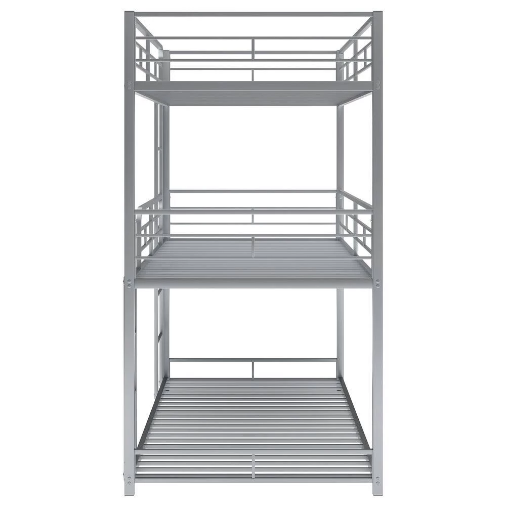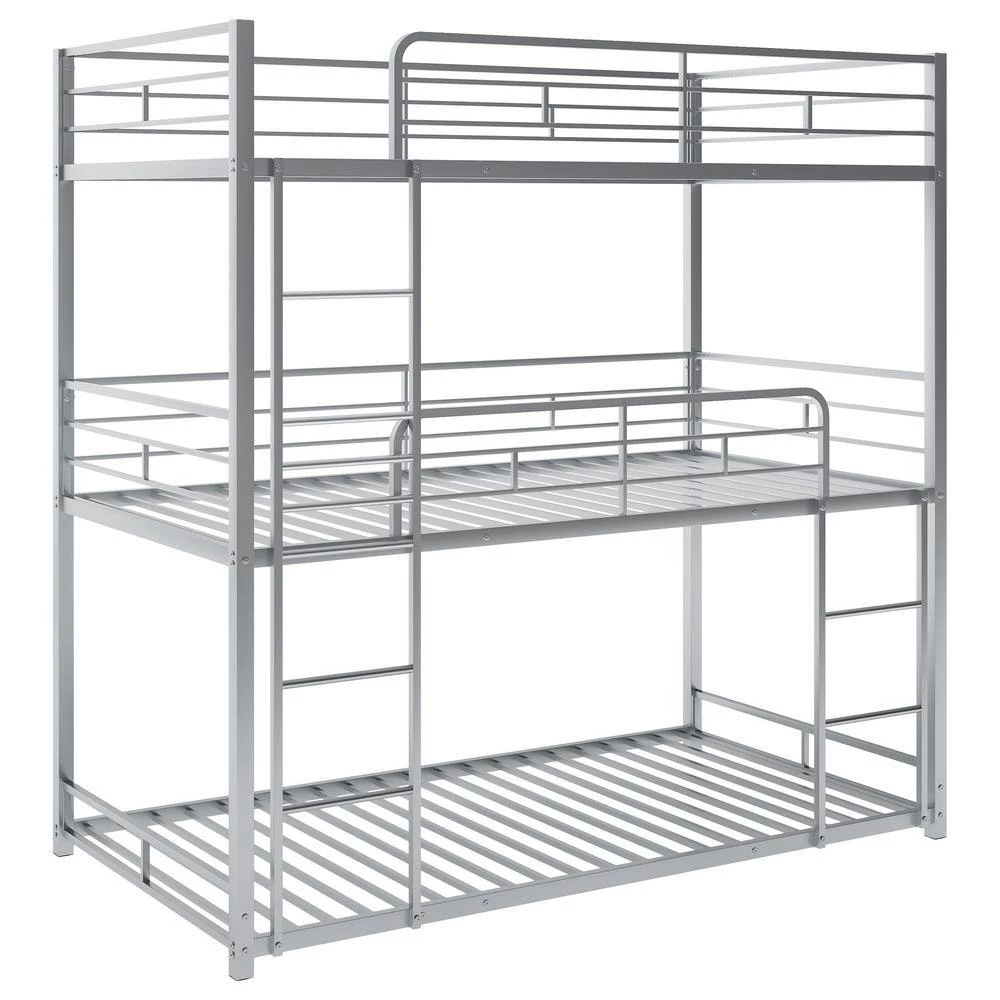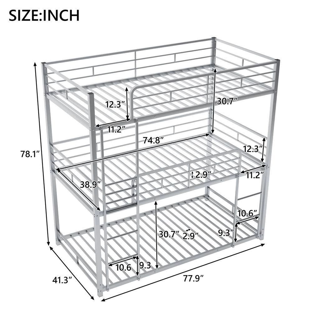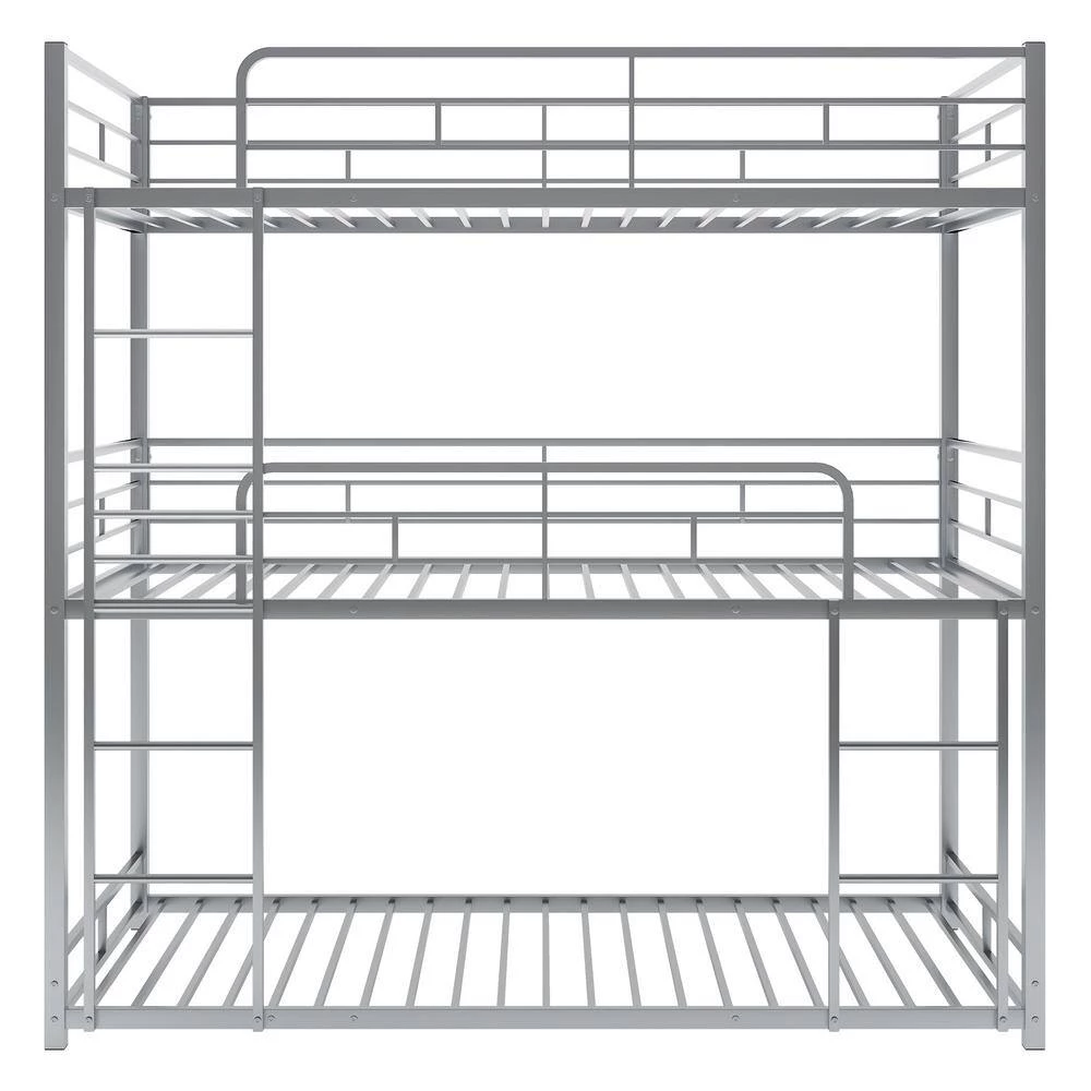 - 【Multi-Functional Triple Bunk Bed】This triple bunk bed is perfect for family which has multiple members. Bunk design is space-saving and two ladders are attached to bed which provide easy access to top bed and middle bed. Constructed with heavy duty metal, the stacking three beds is securely strong and steady.