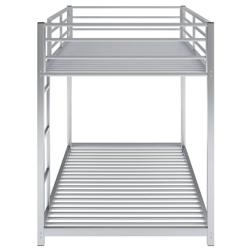 The simple yet contemporary twin-over-twin bunk bed is a modern and classic bed. Featuring a modern curved stylish steel-crafted frame and complimented by an eye-catching chrome finish, it looks clean and elegant in any bedroom or guest room arrangement. And it well accommodates with other bedroom furniture.