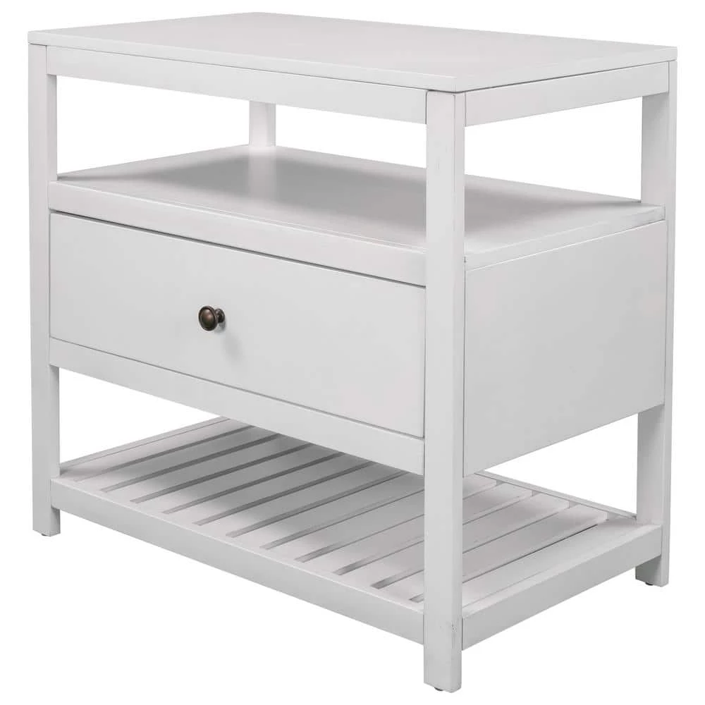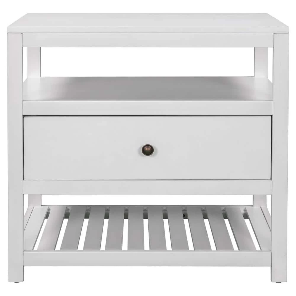 Elegant nightstand comes in a mixture of wooden look boards and metal drawer handles.Working on smooth wood side rails, the practical drawer can be easily pulled in or out for you to reach necessities quickly and easily. The bedside table can used as an end side table beside your sofa or a simple storage cabinet to organize your stuff.Inspired with the modern style, this modern nightstand adds a touch of chic aesthetics while providing a convenient storage solution to your bedroom.