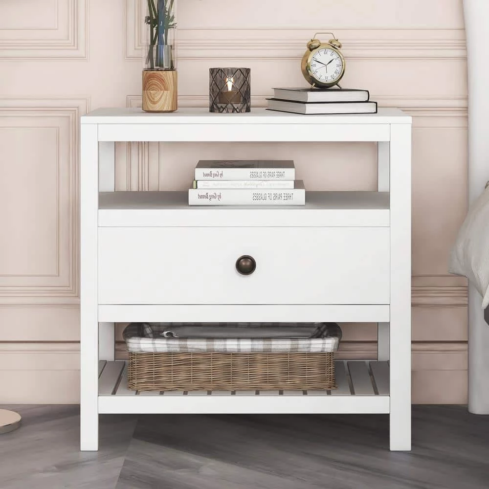 - Nightstand with Storage Drawers : The nightstand is equipped with 1 drawer and 2 open cubby offering you plenty of storage room for your books, documents, snacks, makeup, stuffs and so on.You can easily reach to them within arm’s reach.
