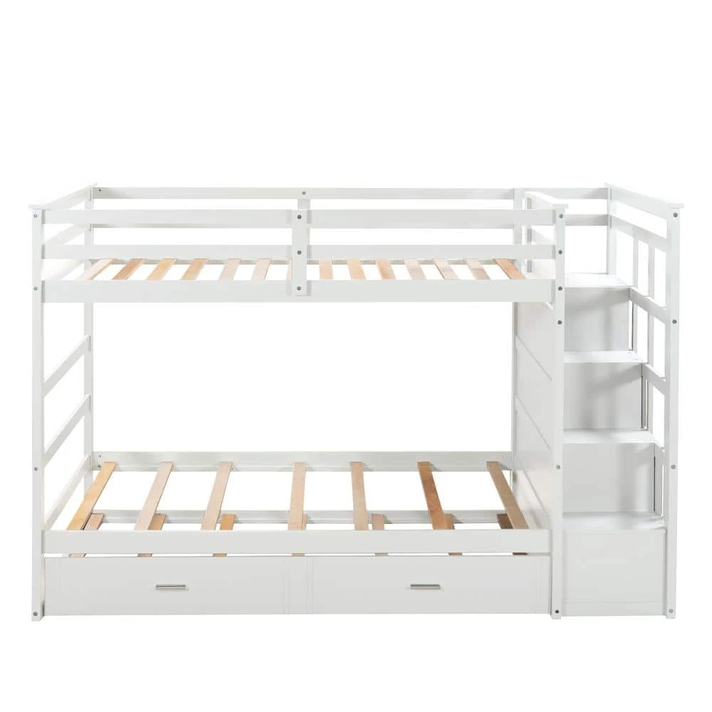 If you need extra sleeping space or your family love sleepovers, this Twin-Over-Twin Bunk Bed is perfect for your home. High-quality, solid pine legs and a strong, durable frame ensures stability and durability for long-term use. Slat kit included so box springs are not required. This bunk bed is designed with a clean silhouette and a hue of elegance. It suits all styles of home decoration, and completes the look of any bedroom. Specifications: Product Type: Bunk Bed Size: Twin-Over-Twin Color: Gray Material: Plywood+MDF+Pinewood Box Spring Required: No Number of Slats: Upper bed – 14, Bottom bed – 7, Trundle bed – 7 Assembly Required: Yes Country of Origin: Vietnam Product Warranty: One year Weight & Dimensions Overall Product Dimension: 91.3″L x 42.4″W x 65.7″H Overall Product Weight: 240LBS Detail Product Dimension: Please refer to the Size image Number of Package: 3 Package Dimension: Package Quantity 1: 81.89 x 14.57 x 5.91 inches 88.18lbs Package Quantity 2: 79.53 x 16.93 x 4.72 inches 66.14lbs Package Quantity 3: 42.17 x 25.07 x 9.02 inches 93.89lbs Weight Capacity: Upper bed – 175LBS, Bottom bed – 275LBS, Trundle bed – 175LBS Recommended Mattress Thickness: Upper bed – 6″, Bottom bed – 8″, Trundle bed – 6″ Notes: Manual measurement has been used,there may be some reasonable error. All the pictures are taken by actual samples, slight chromatic aberration may occur due to lighting or display.