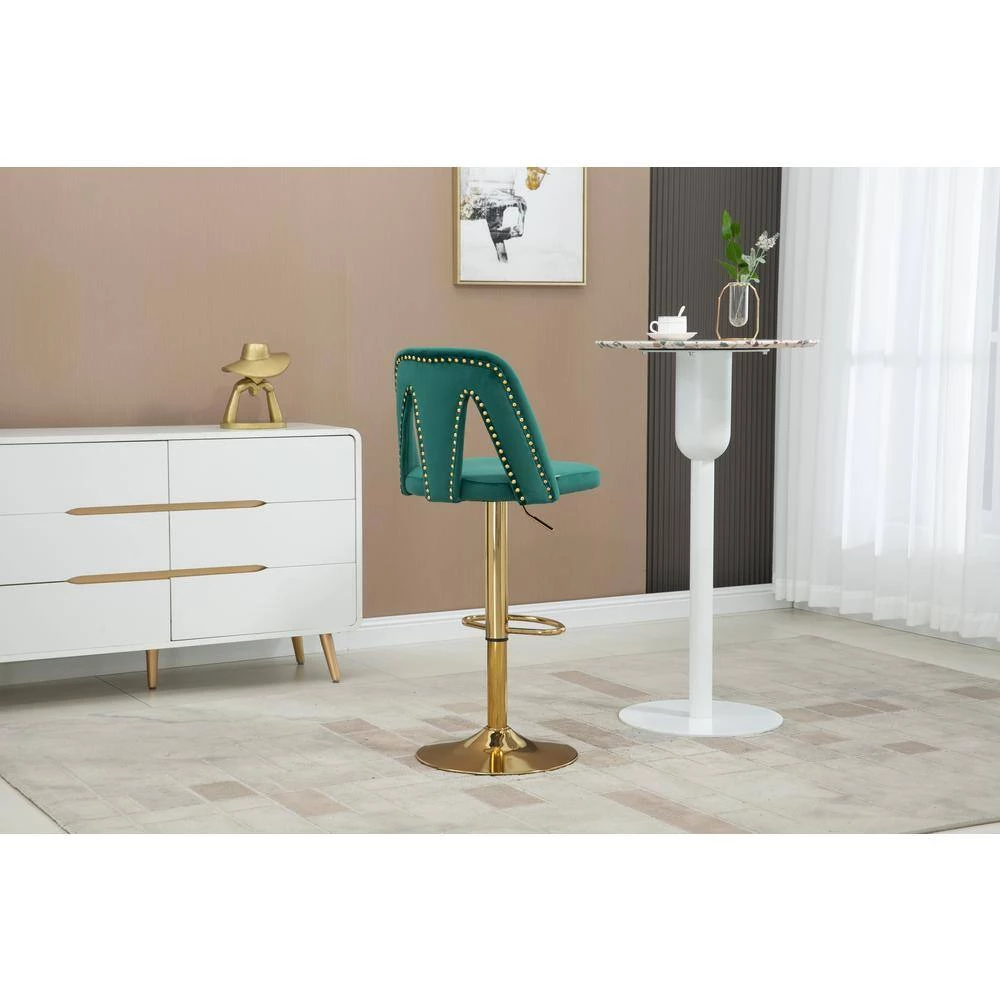 - [Give You Excellent Comfort] the velvet bar stool is covered with tufts, delicate and soft. Built in high-quality foam, high cushion thickness. When you sit down, you can immediately feel its softness. The curved back design can increase the fashion sense and reduce the waist pressure. Chic handrails add comfort. This classic height adjustable rotary bar stool brings you a pleasant user experience.
