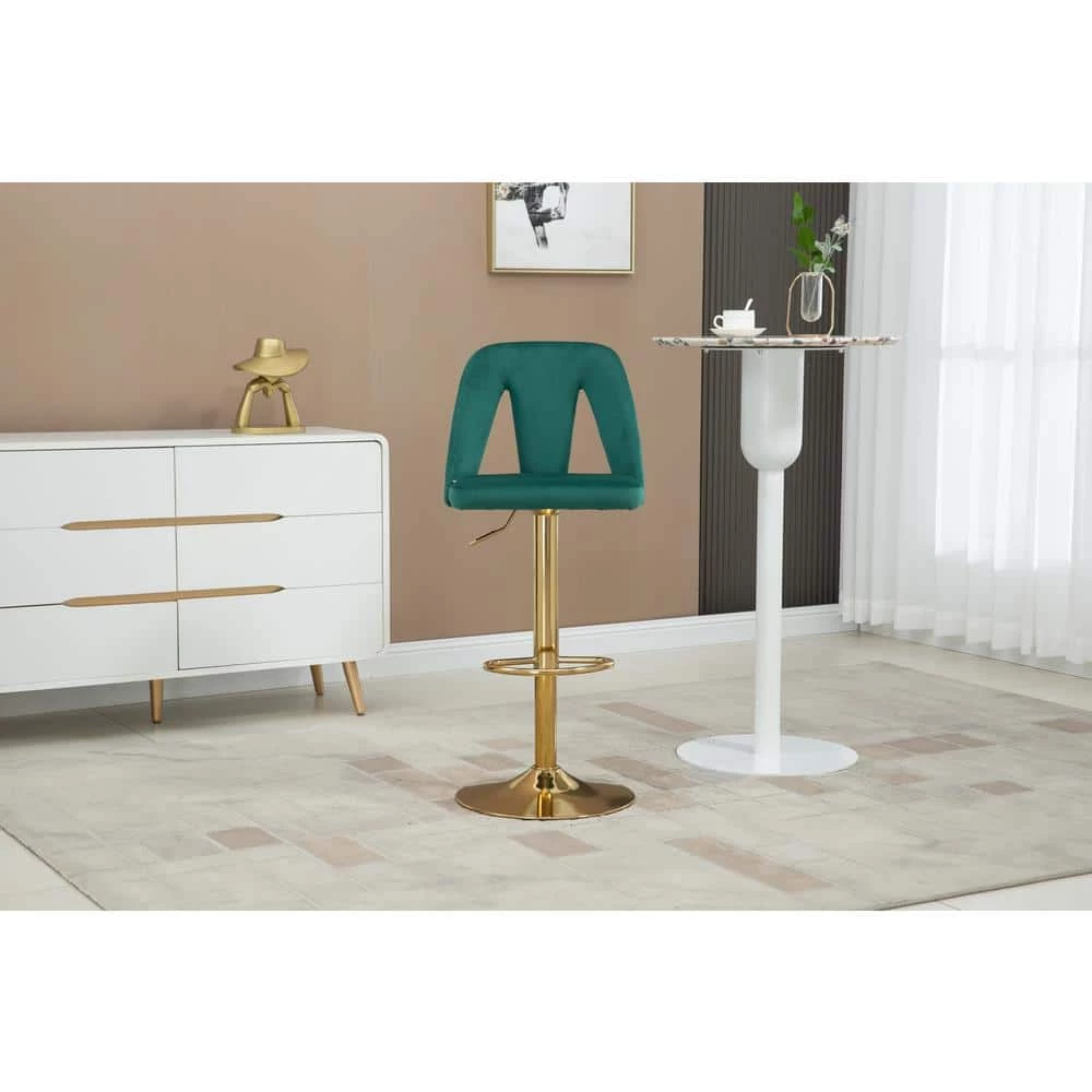 Whether you need a comfortable place to eat, work, relax or make up, this stylish bar stool will meet your taste. The bar chair has a gold metal base and a M-shaped hollow back decorated with nail heads, revealing exquisite beauty. This bar chair is made of high-quality raw materials and can stand the test of time. Velvet fabric is wrapped with high-quality and high-thickness foam for long-term comfort. This classic height adjustable rotary bar stool has an open circular footrest and metal lever operation to bring you a pleasant user experience. It will be an ideal complement to your kitchen, bar, living room or dining area to maximize the decoration of the scene. It’s worth it.