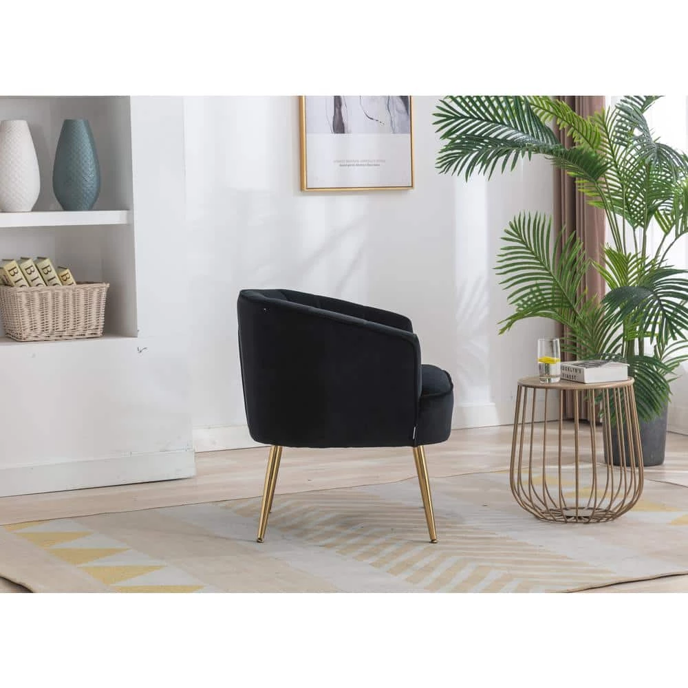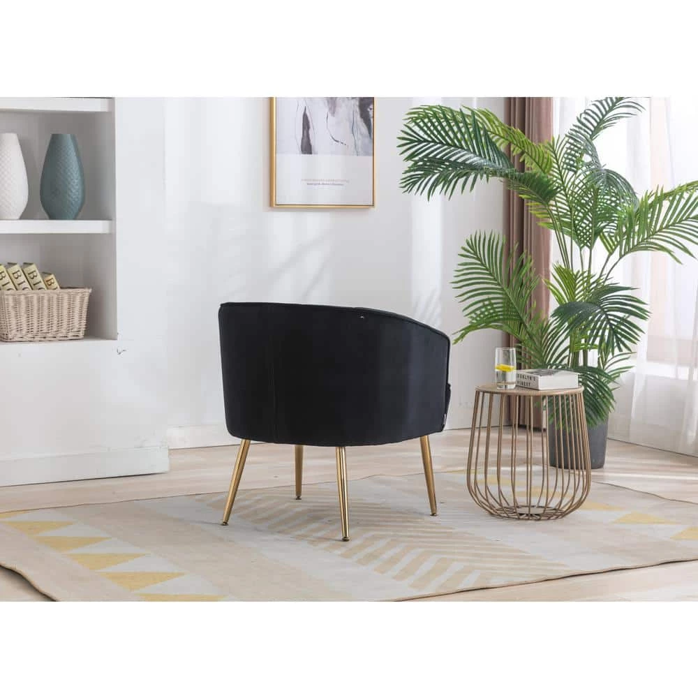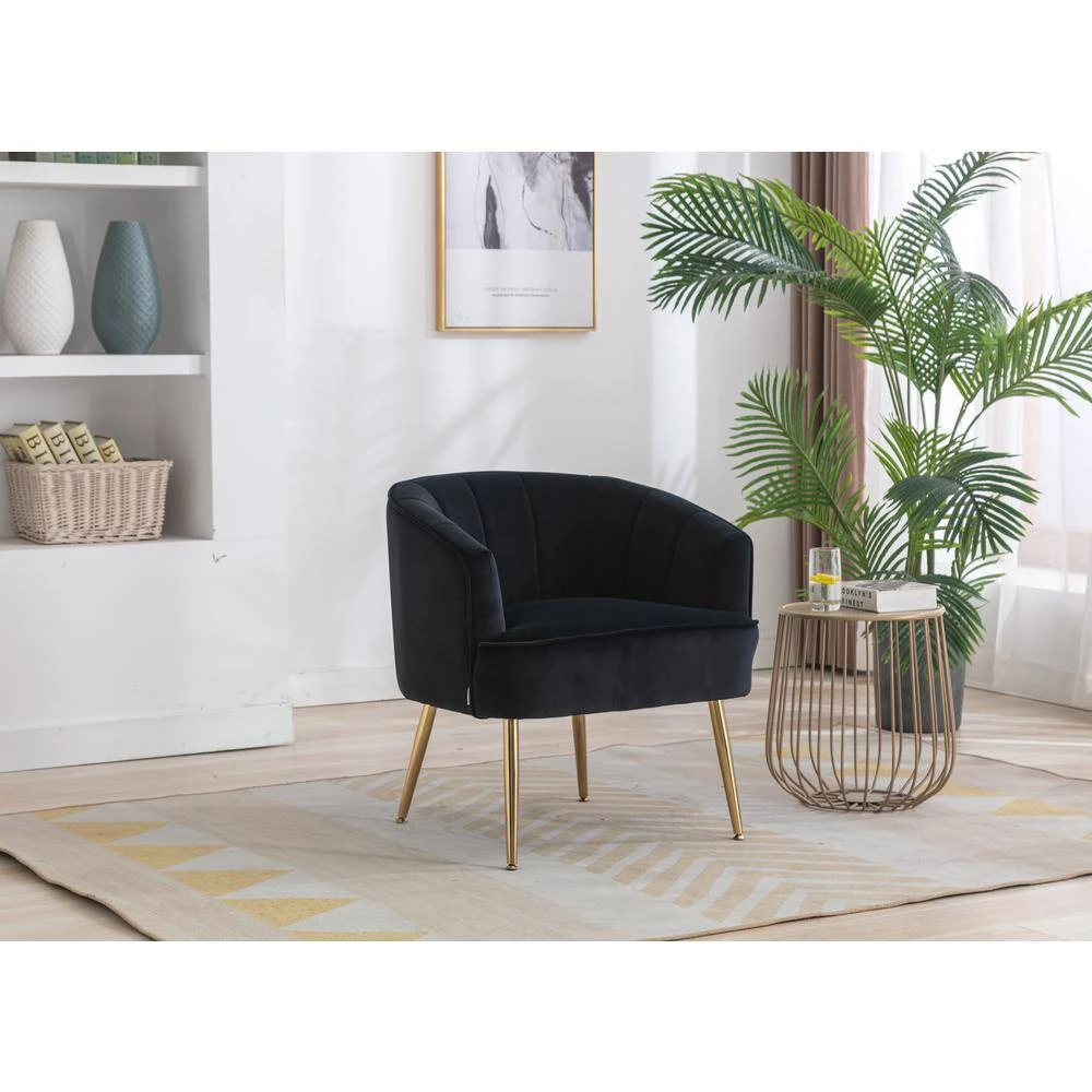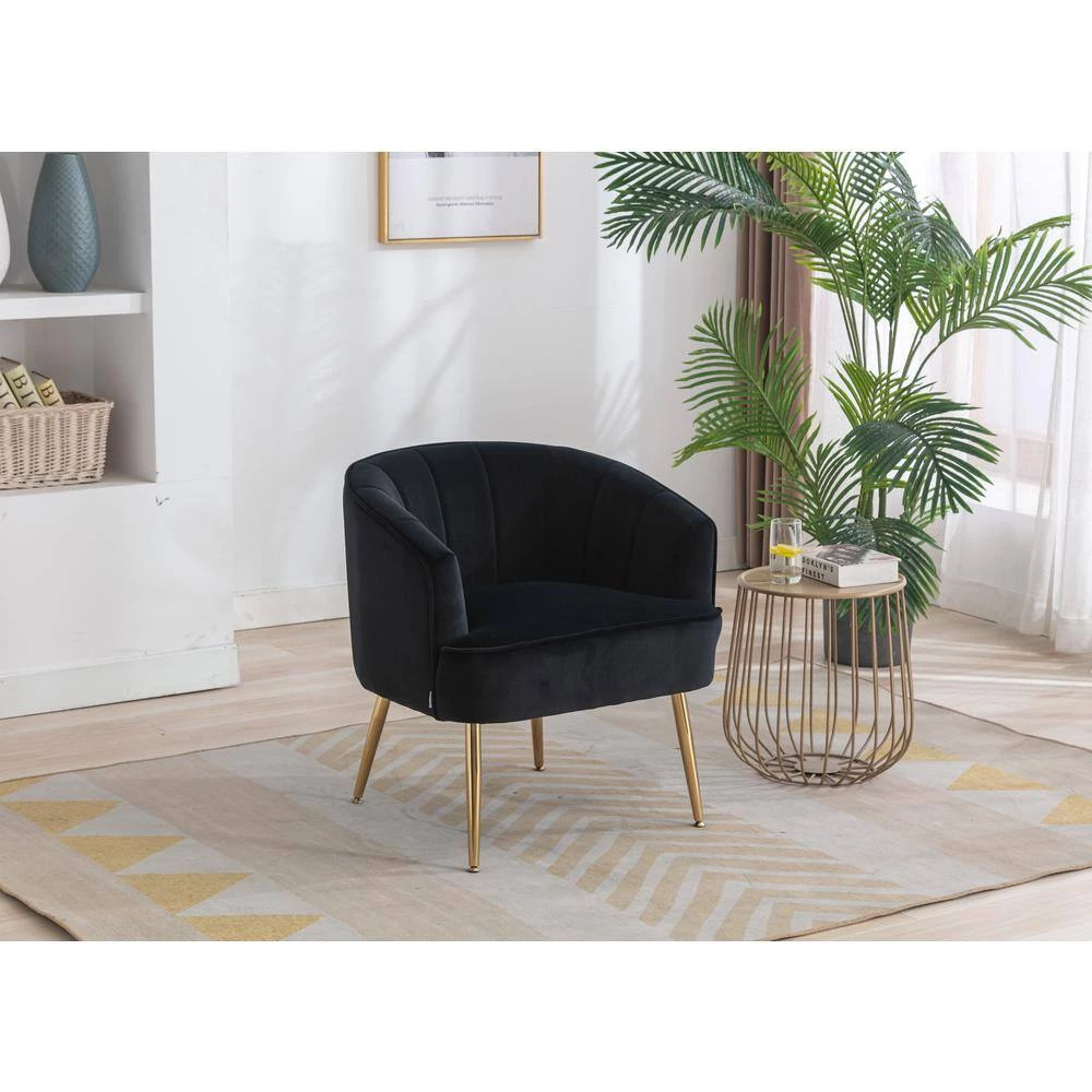- Classic and Fashionable Barrel ChairThis velvet facing barrel chair, with classic solid color design, reveals the noble and elegant velvet, The tapered golden metal leg is beautiful, With it, you can instantly light up your room, Friends will be amazed when they see it,