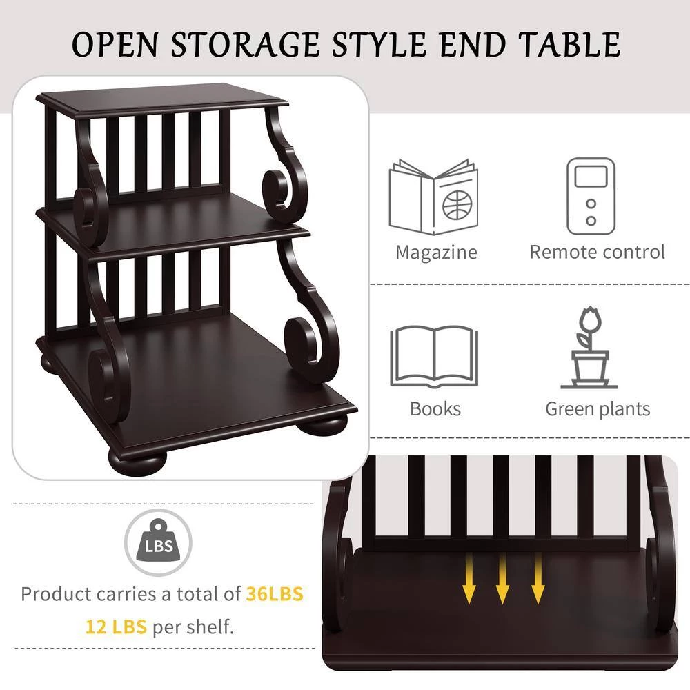 - 【Sturdy Nightstand】Crafted from solid and manufactured wood, this nightstand is built to last for many years. It features three shelves that provide a place for books, vitamins, and more.