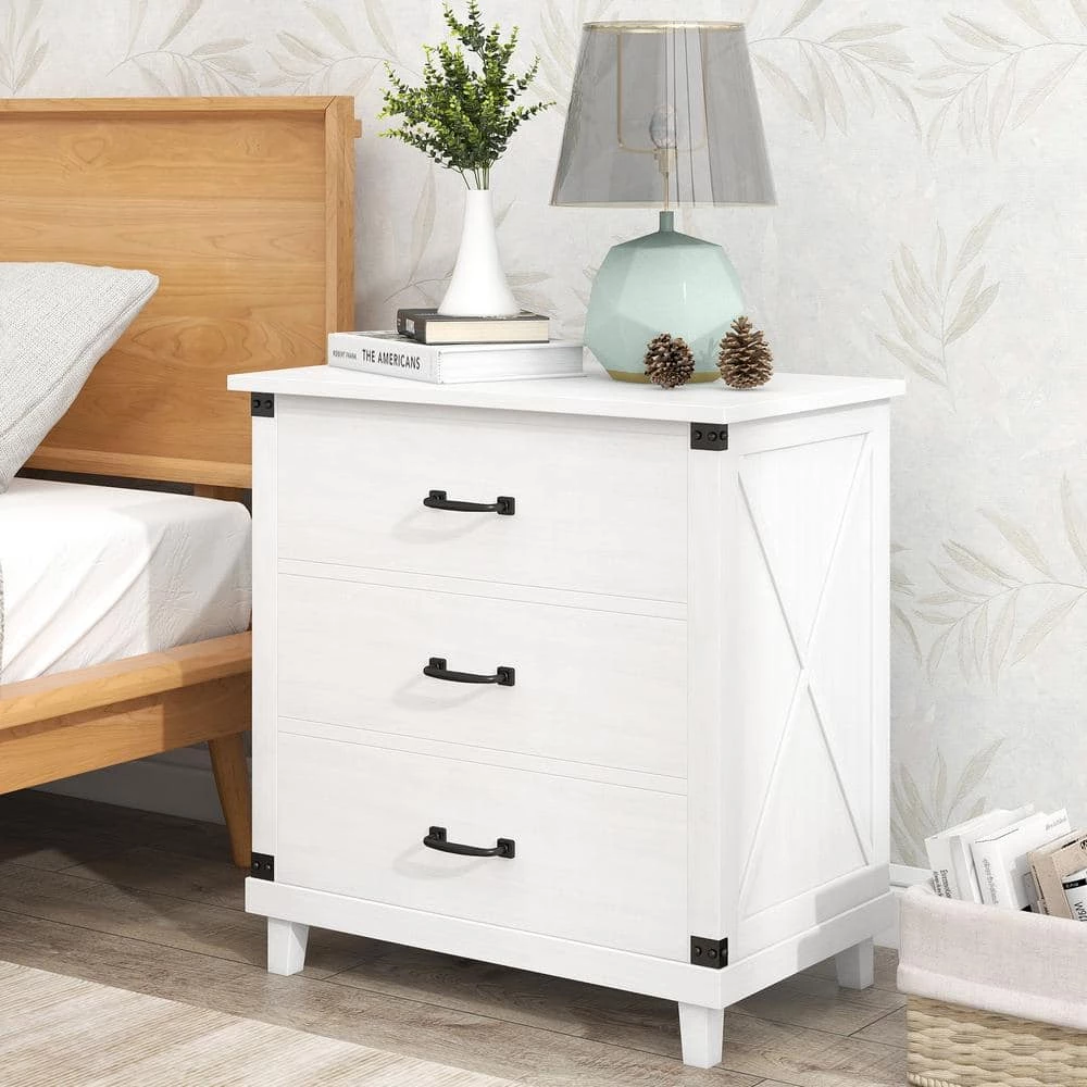 - Abundant Storage Space: This drawer bedside table is equipped with 3-Drawers, which provides you enough storage space for storage and display.Keep your bedroom living room organized.Working on smooth wooden side rails, the practical drawers can be easily pulled in or out.Table tops are perfect for displaying lights, clocks, potted plants or picture frames for a warm and personal touch.