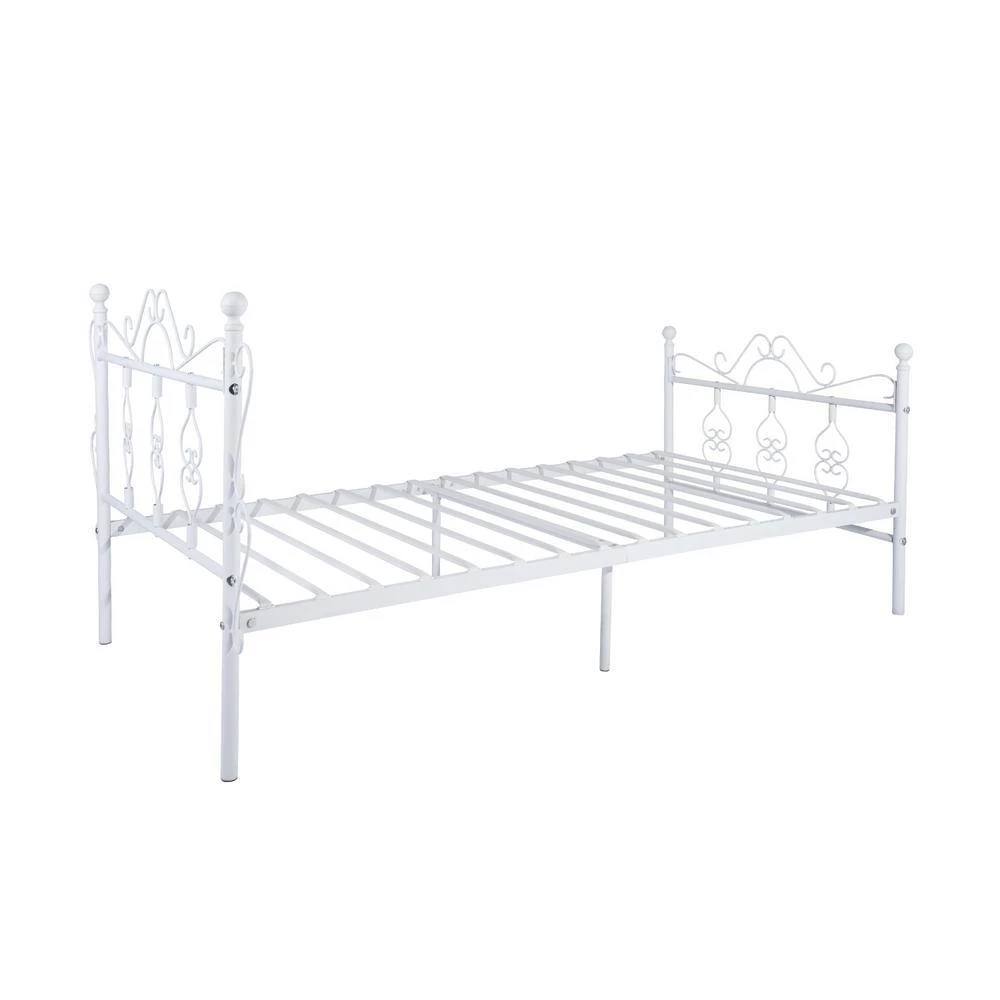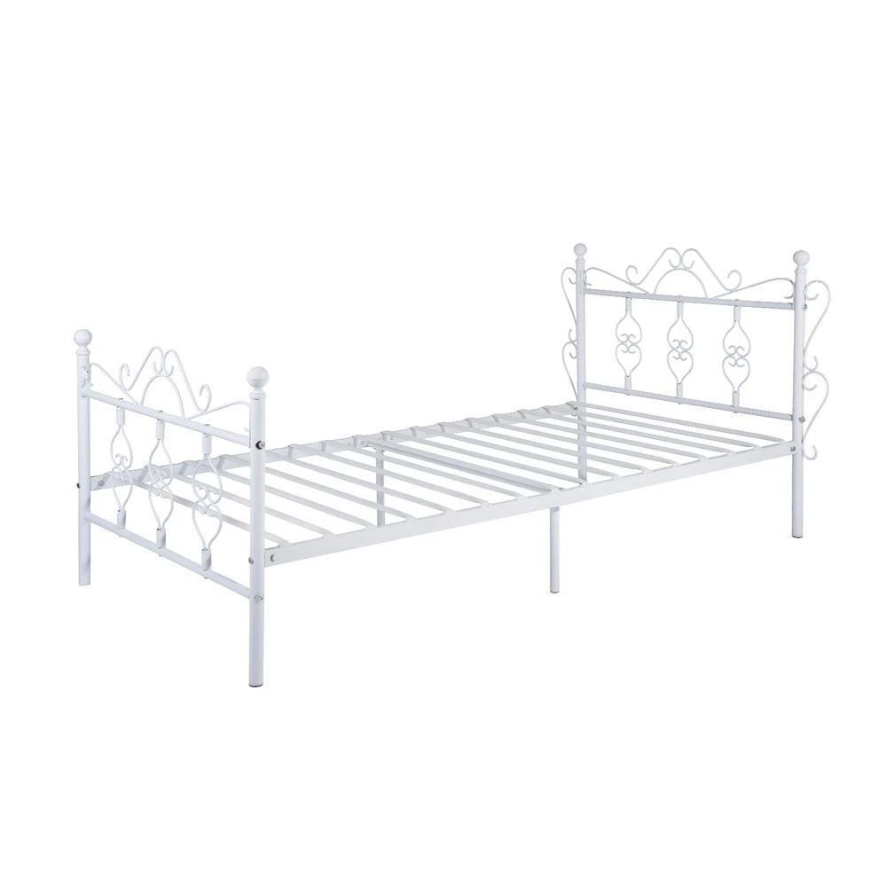 - [Elegance and Fashion Coexist]This elegant metal platform bed, the beautiful pattern design of headboard and pedal, and the shiny white metal coating enhance the fashionable charm. Its minimalist curve design perfectly matches with different styles of bedroom furniture, which is suitable for bedrooms, guest rooms, apartments and dormitories. Your best choice.