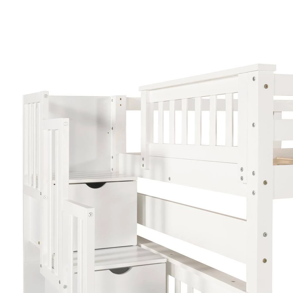 - Maximized space: four compartments of different sizes hide underneath stairs of this bunk bed and are perfect for you to store quilts, bed sheets and other necessities, on top of that, you can store books and toys, making room-tidying a breeze, bunk bed takes up minimal space for spontaneous sleepover guest, even better, a pair of drawers offers stowaway space for clothes and bedtime stories down below, functional and aesthetic, this bunk bed will enhance any bedroom