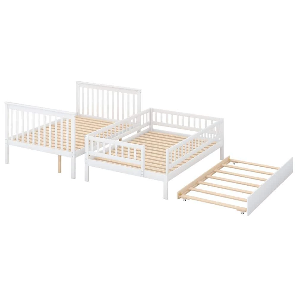 - 【Detachable Full Bunk Bed 】With a practical design, this unique full over full bunk bed features a trunldle for you while take up little floor space which is especially suitable for rooms with compact space. And the stylish bunk bed can also be divided into 3 individual beds for even more convenience.