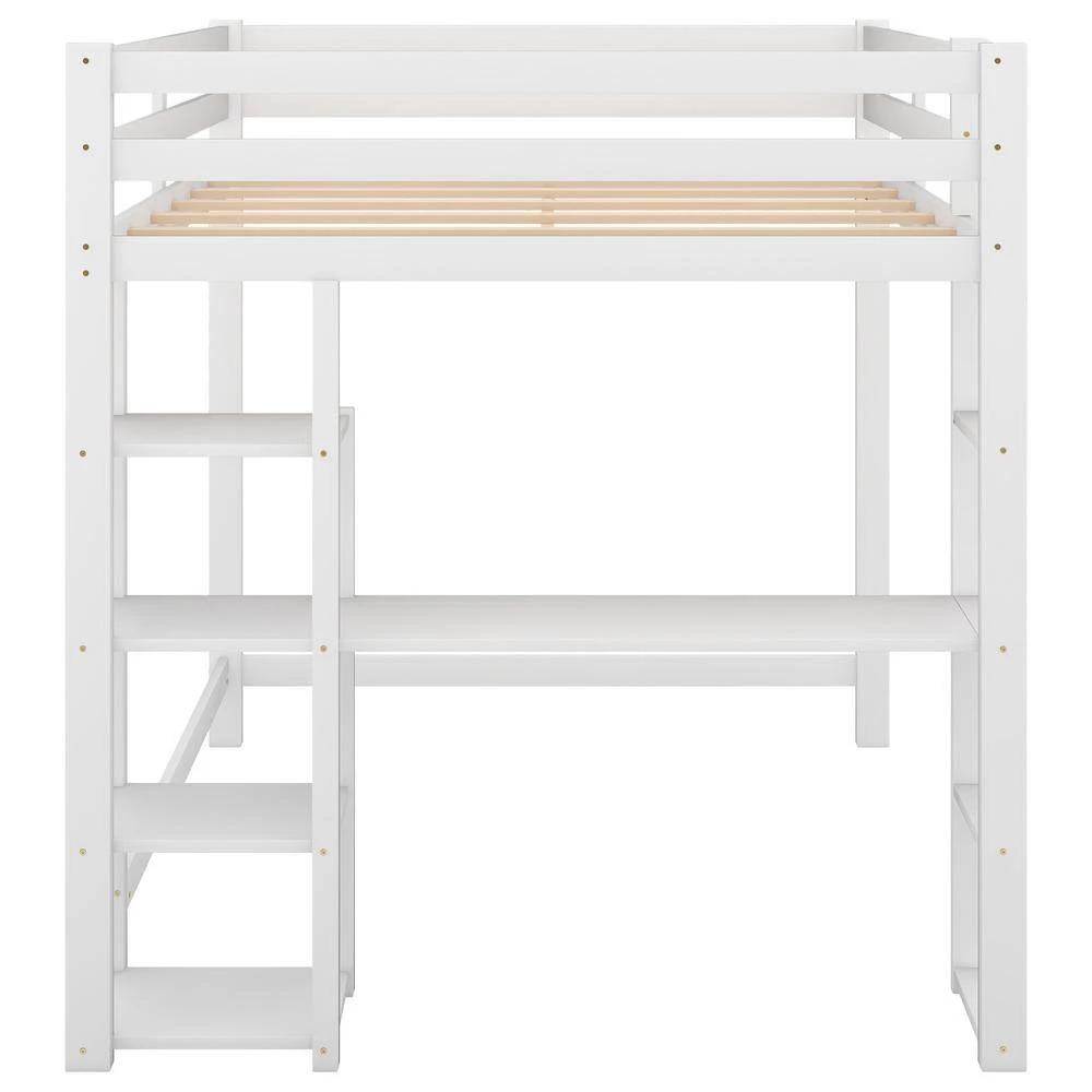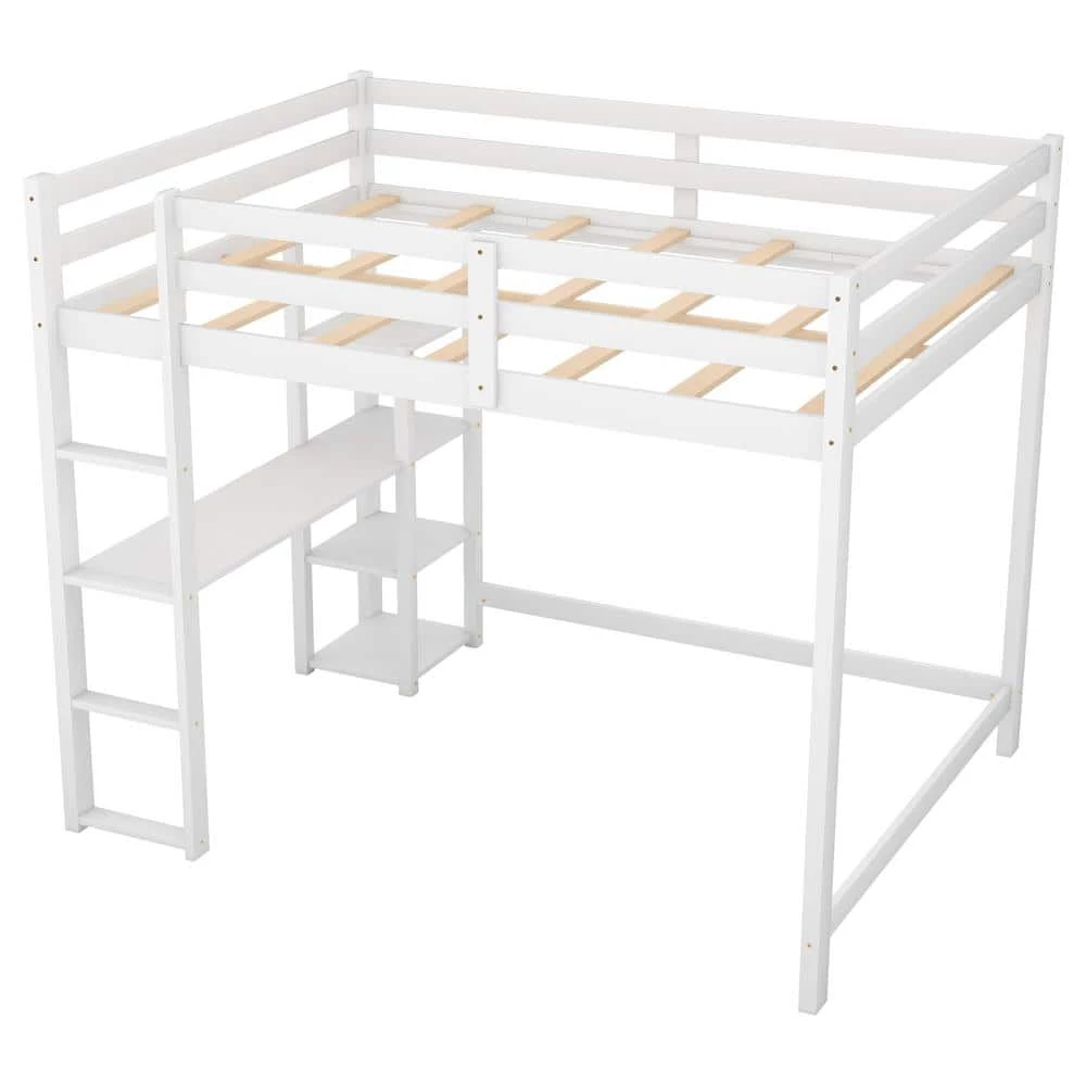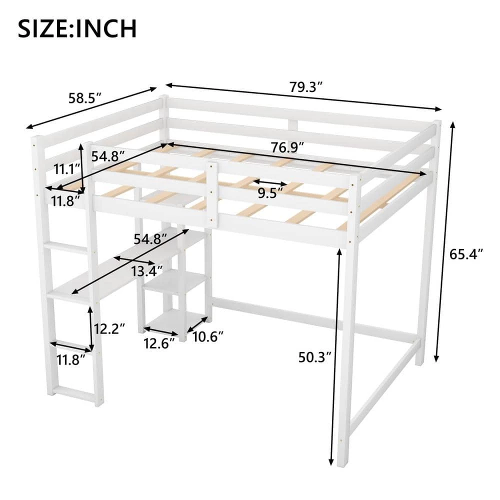 - 【Stable and Safety Structure】The loft bed includes a desk and four shelves integrated to the wooden frame. Rugged pine wood and MDF frame, safe and secure for ultimate safety. Showcasing guardrails along the length of the bed for extra safety, this must-have bed is a perfect addition to your furniture arrangement.