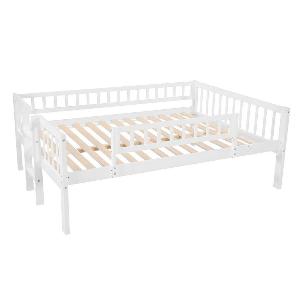- Convertible ladder and slide: full bunk bed with slide and 2-built-in ladders , rounded edges provides easy access to upper and middle bunks, featuring a low slide for kids to play, this triple bunk bed can add fun to children and develop their sense of balance and coordination, slide and short ladder are convertible, both of them can be put left or right