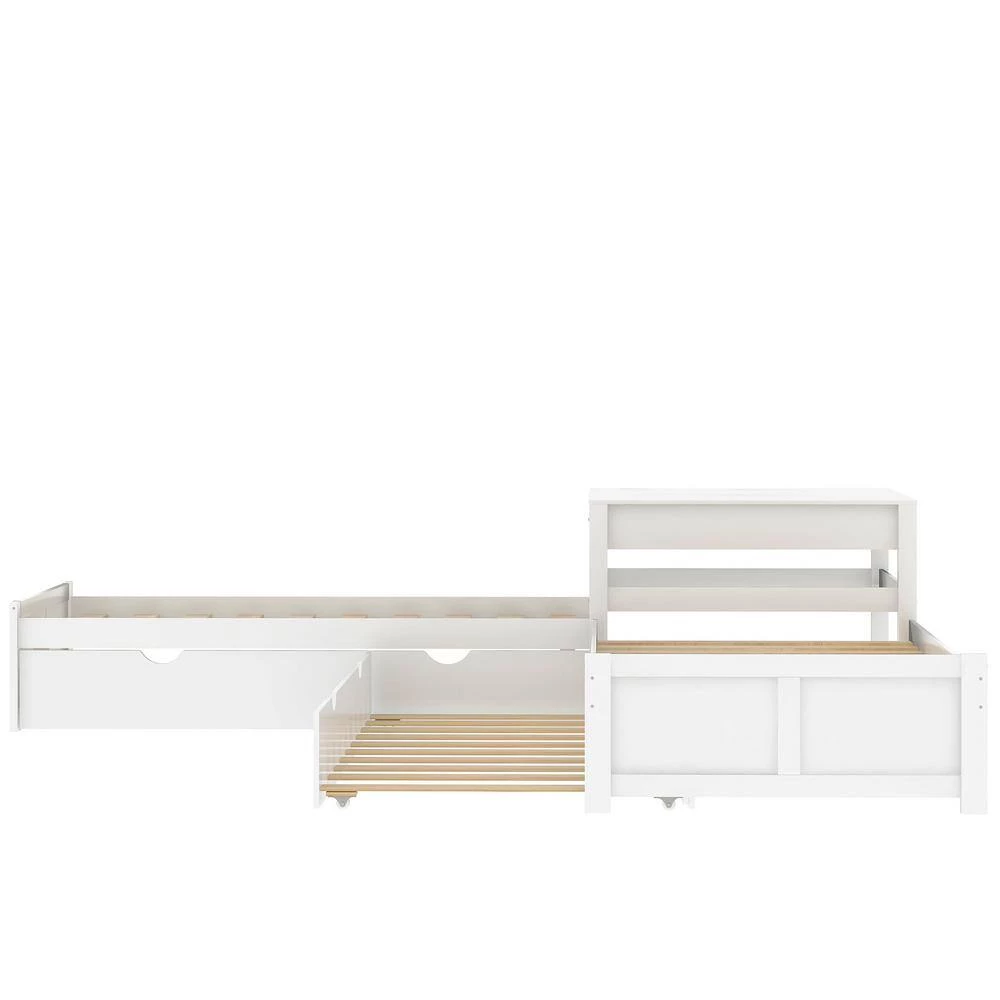 - 【4 Beds in 1】This L shaped bunk bed features 4 beds, two platform beds with two trundles. The twin corner platform bed is perfect for families who have several members. you can also accommodate overnight friends of yours,p erfect for limited space.