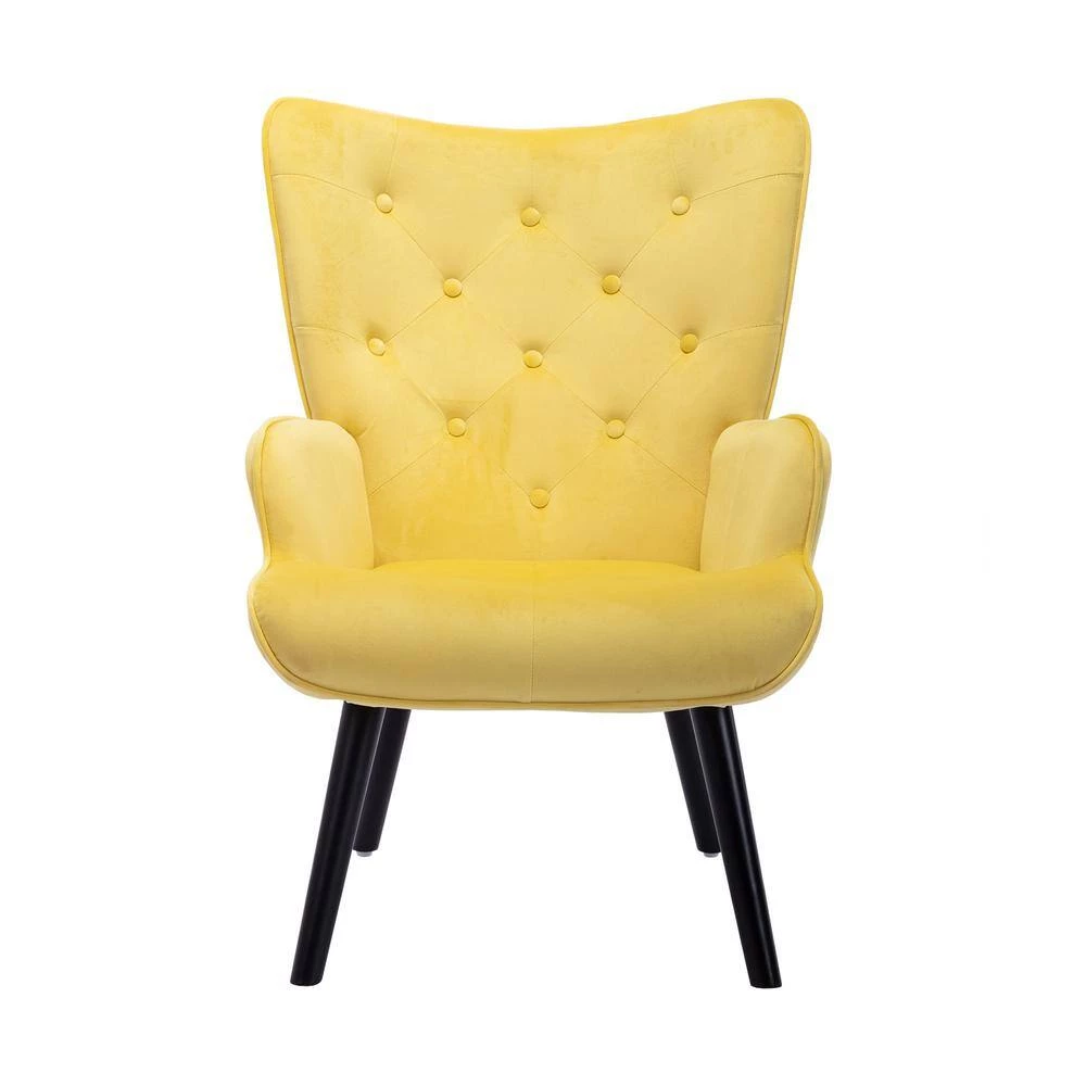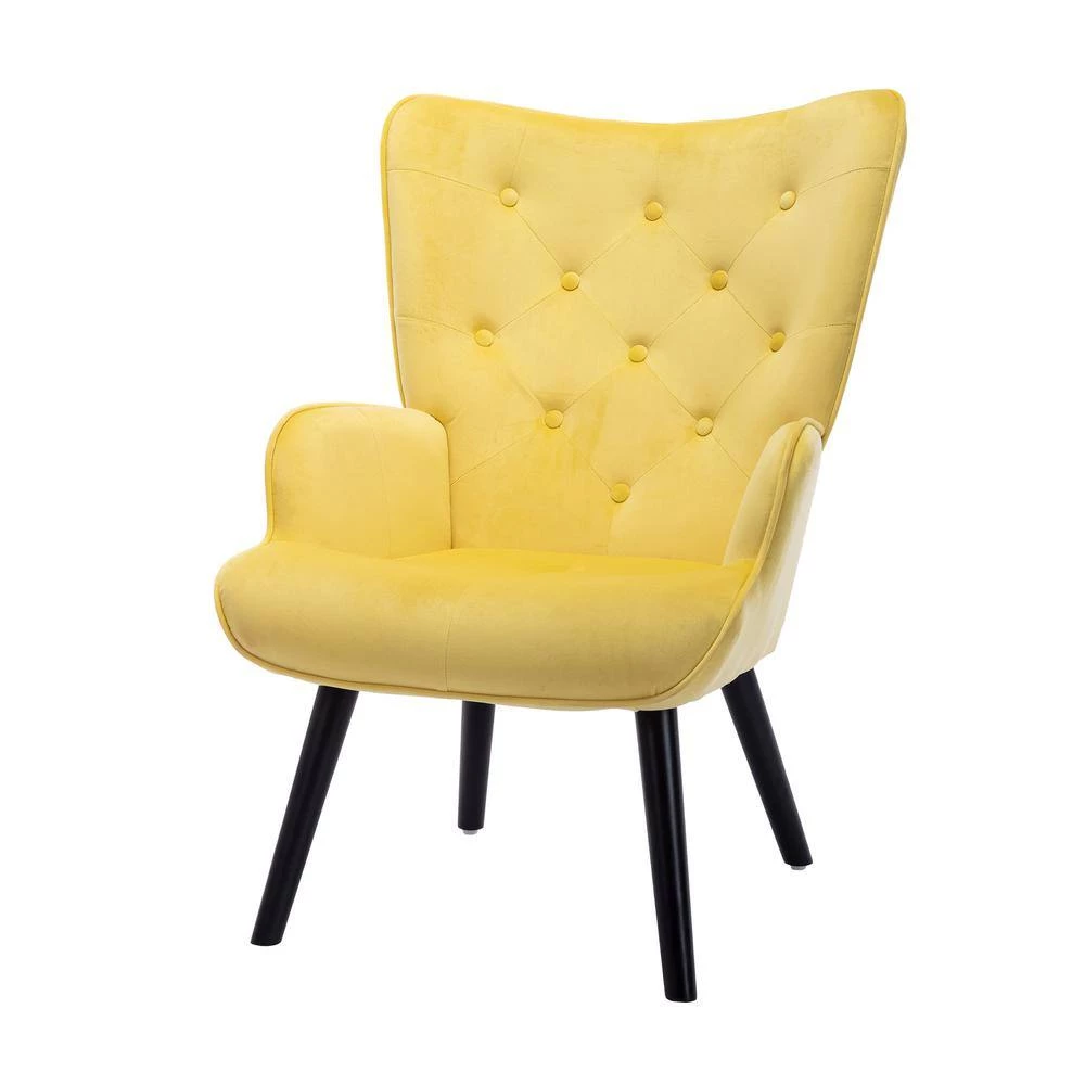 Yellow Velvet Fabric Upholstery Arm Chair ( Set of 1), Accent Leisure Arm Chair with Wood Feet, Upholstered Arm Chair by ANBAZAR